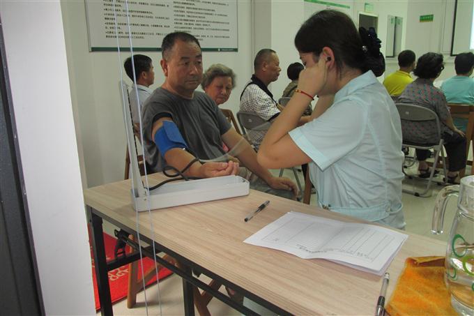 (护士在给社区居民测量血压)