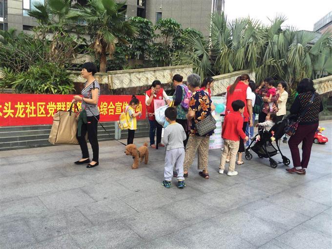 2018年04月28日下午,木头龙社区党群服务中心在合正荣悦小区府内,开展了木头龙社区综合宣传活动。本次活动主要宣传内容有:向社区居民宣传5月份活动预告、现场招募活动参与人员、社区药品安全知识宣传、过期药品回收、义工招募,问卷调研等活动。