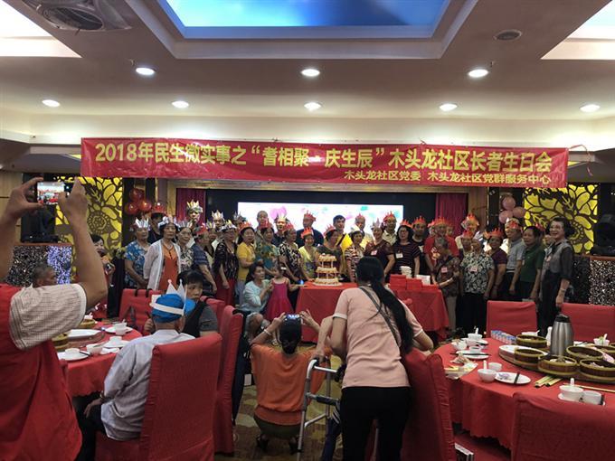 2018年6月22日,木头龙社区党委、木头龙社区党群服务中心在俊园酒店三楼举办了深受社区长者欢迎的民生微实事项目之一——第二期长者生日会。