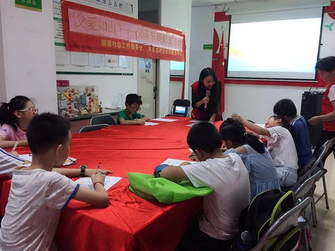 2018年6月15日,在木头龙社区党群服务中心一楼活动室,开展了“父爱如山”——父亲节观影工作坊。
