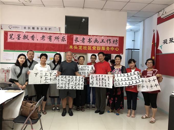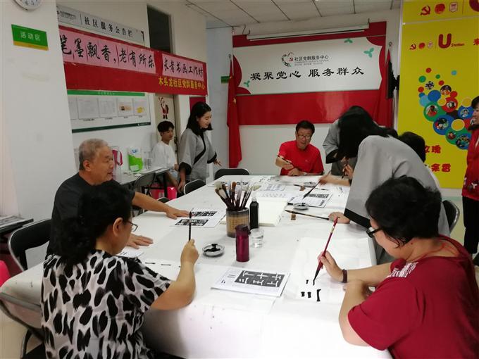 传中华文化,承千年底蕴。木头龙社区党委联合党群服务中心于2018年6月14日下午邀请敦修书院三位老师在木头龙社区党群服务中心一楼活动室开展了“笔墨飘香,老有所乐”——长者书画工作坊。