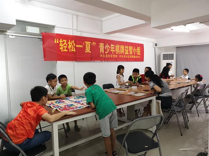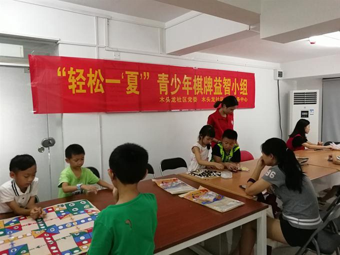 2018年7月24日上午,木头龙社区党群服务中心在活动中心二楼活动室开展了“欢乐木头龙,暑期训练营”暑期青少年系列活动之一的“轻松一夏”青少年棋牌益智小组。