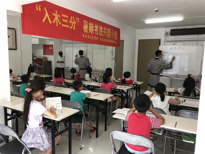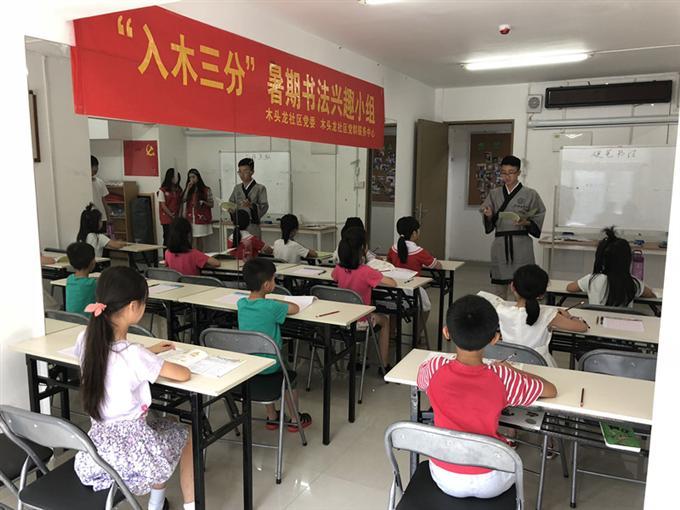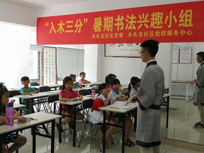 为了丰富社区儿童暑假生活,传承中华传统文化,暑假期间,木头龙社区党群服务中心于2018年7月16日邀请了敦修书院老师以“入木三分”为主题开展了为期五节课暑期书法兴趣小组。