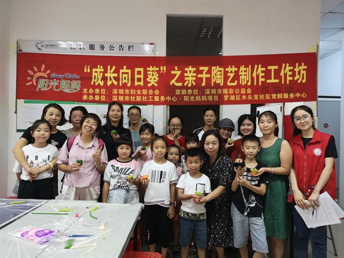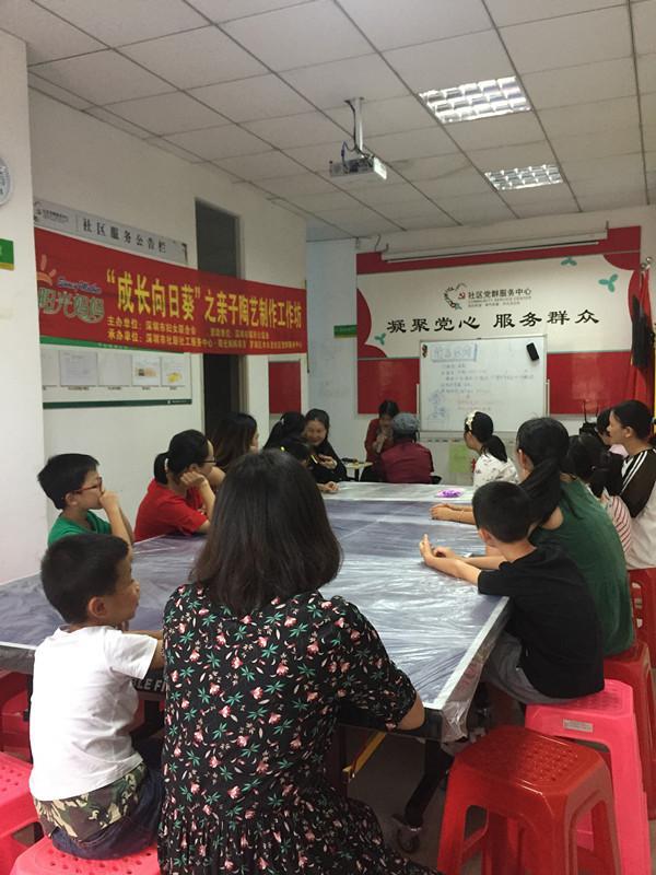 2018年8月25日下午15:00-17:00,木头龙社区党群服务中心联合阳光妈妈项目在木头龙社区党群服务中心一楼活动室开展了“成长向日葵”之亲子陶艺制作工作坊,通过生动有趣的陶艺制作来提升亲子的动手能力,促进家长与孩子的沟通和互动。该活动共有10对亲子共20人参加。