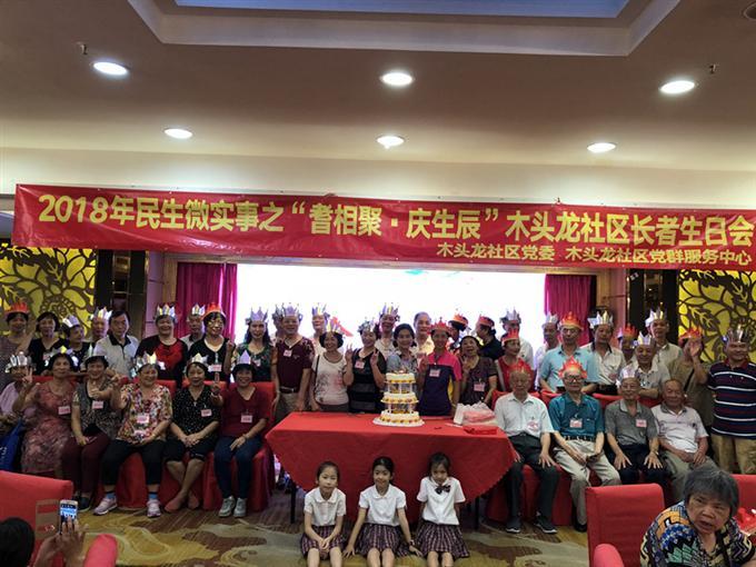欢声笑语,天降吉祥;嘉庆酒楼,喜气洋洋。2018年8月29日下午,在俊园酒店三楼迎来了由“翠竹街道办事处、木头龙社区党委主办,木头龙社区党群服务中心承办”的深受长者欢迎的民生微实事项目之一——长者生日会,长者们欢聚一堂。