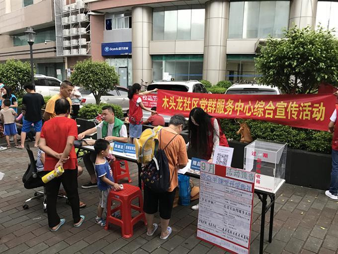 为了更好的了解社区居民的需求,给居民朋友们提供切实服务,更好地建设和谐社区。2018年9月5日下午,木头龙社区党群服务中心在怡泰大厦广场开展了一场社区综合宣传活动。本次活动主要宣传内容有:社区药品安全知识宣传、过期药品回收、食品安全宣传、9月活动预告招募,以及社区居民服务需求调研问卷发放。