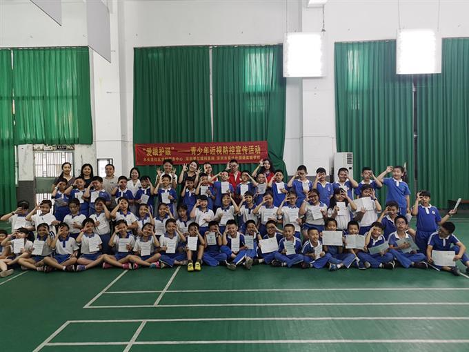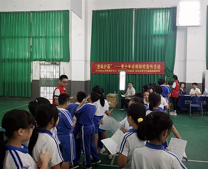为帮助社区内的小学生进行近视筛查,预防常见眼科疾病,2018年9月26日,由社区党群服务中心联合爱尔眼科医院,协同翠竹外国语实验学校共同开展“爱眼护眼”——青少年近视防控宣传活动在翠竹外国语实验学校羽毛球馆举行。