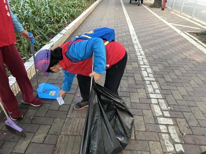 木头龙社区党群服务中心持续推进“净化社区”志愿者服务开展,每天两次清扫巡逻,共组织志愿者30余人次,为营造干净整洁靓丽的社区环境努力,基本实现辖区内垃圾无乱堆乱放、无乱扔乱倒等现象,推动居民生活环境切实改善。在木头龙社区社工的带领下,义工们手持扫把、垃圾袋、长夹子等工具对街道绿化带及路面都进行了清扫工作。大家分工合作、职责明确,有的负责整理乱停乱放的共享单车,有的负责捡拾垃圾,他们忙碌的身影在穿梭的人群中形成一道亮丽的风景线。当看到志愿者们的工作成效时,过往的居民及附近店家纷纷大力点赞。
