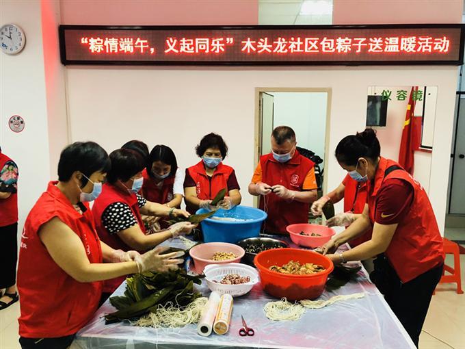 为弘扬中华民族传统美德,2019年6月6日,木头龙社区党委组织社区义工及党员志愿者在党群服务中心一楼开展“粽情端午,义起同乐”包粽子送温暖活动。