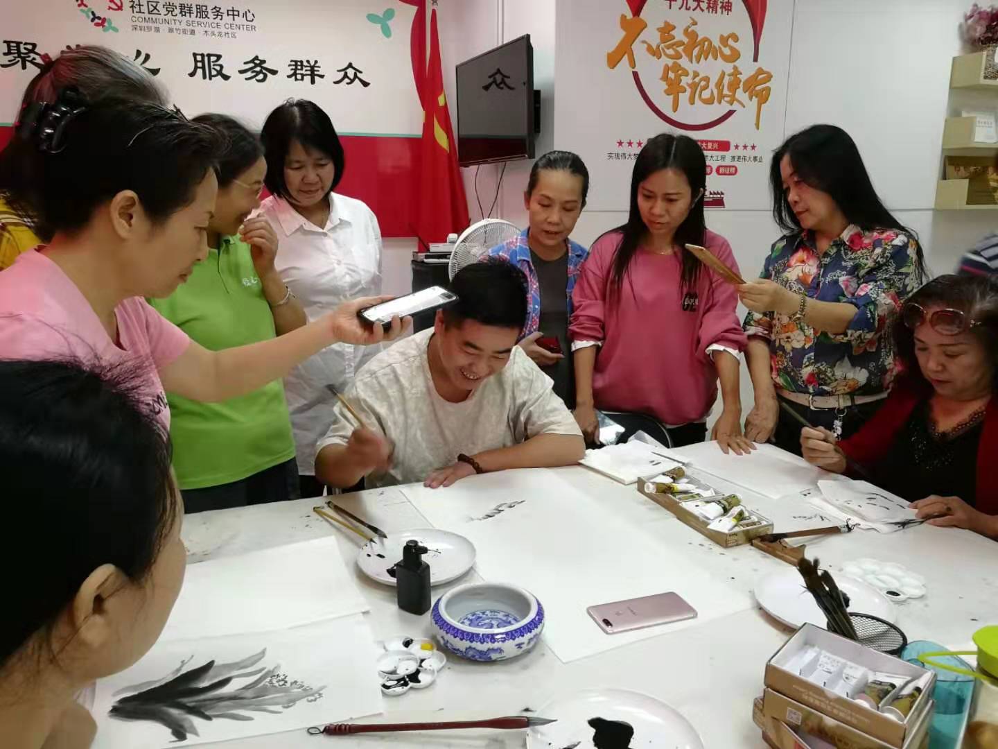 罗湖家园网讯:2019年10月29日上午,木头龙社区联合辖区敦修书院在党群服务中心一楼开展每周一次的居民兴趣课堂——国画兴趣班活动。