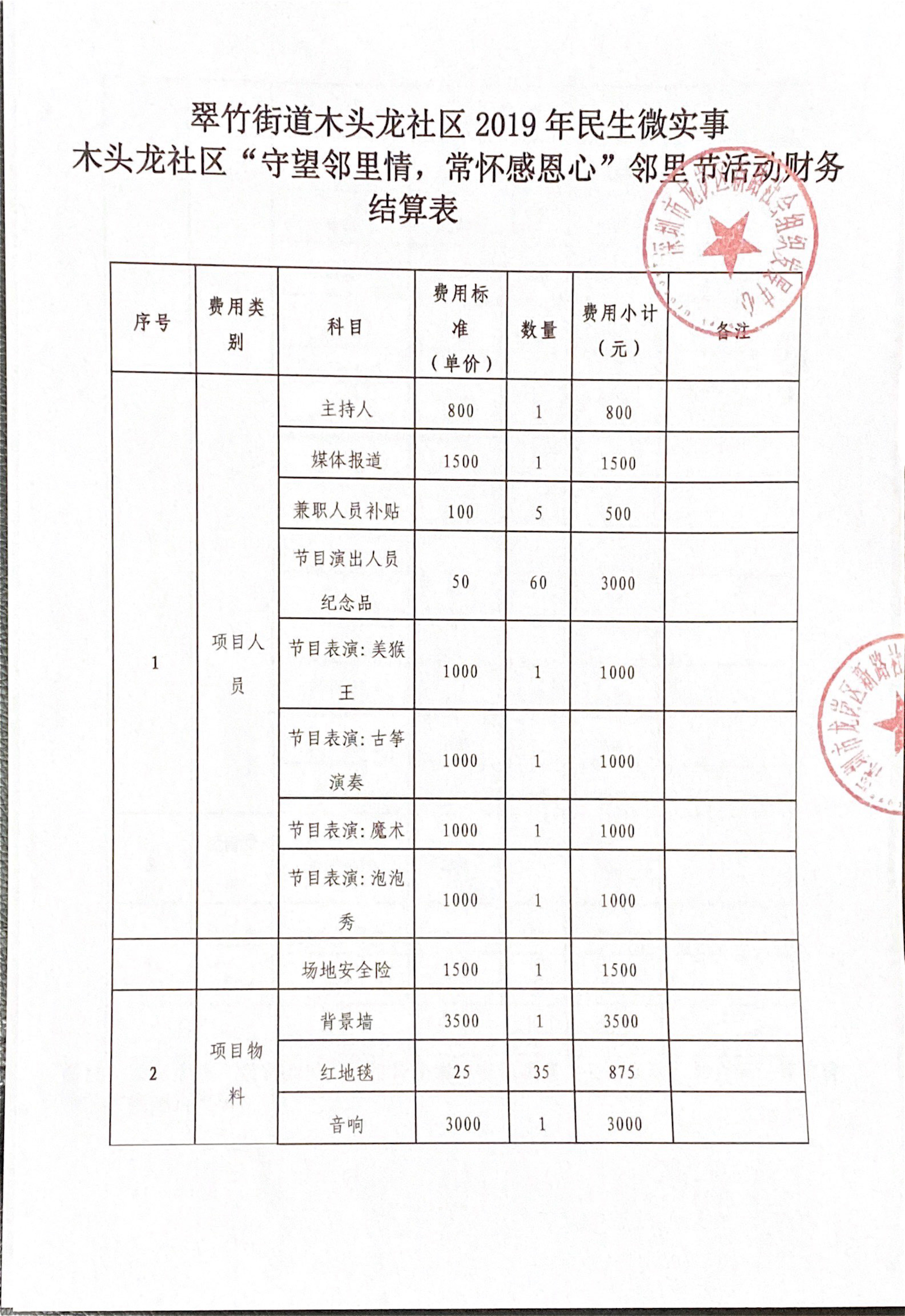 民生微实事“守望邻里情常怀感恩心”社区邻里节结算公示