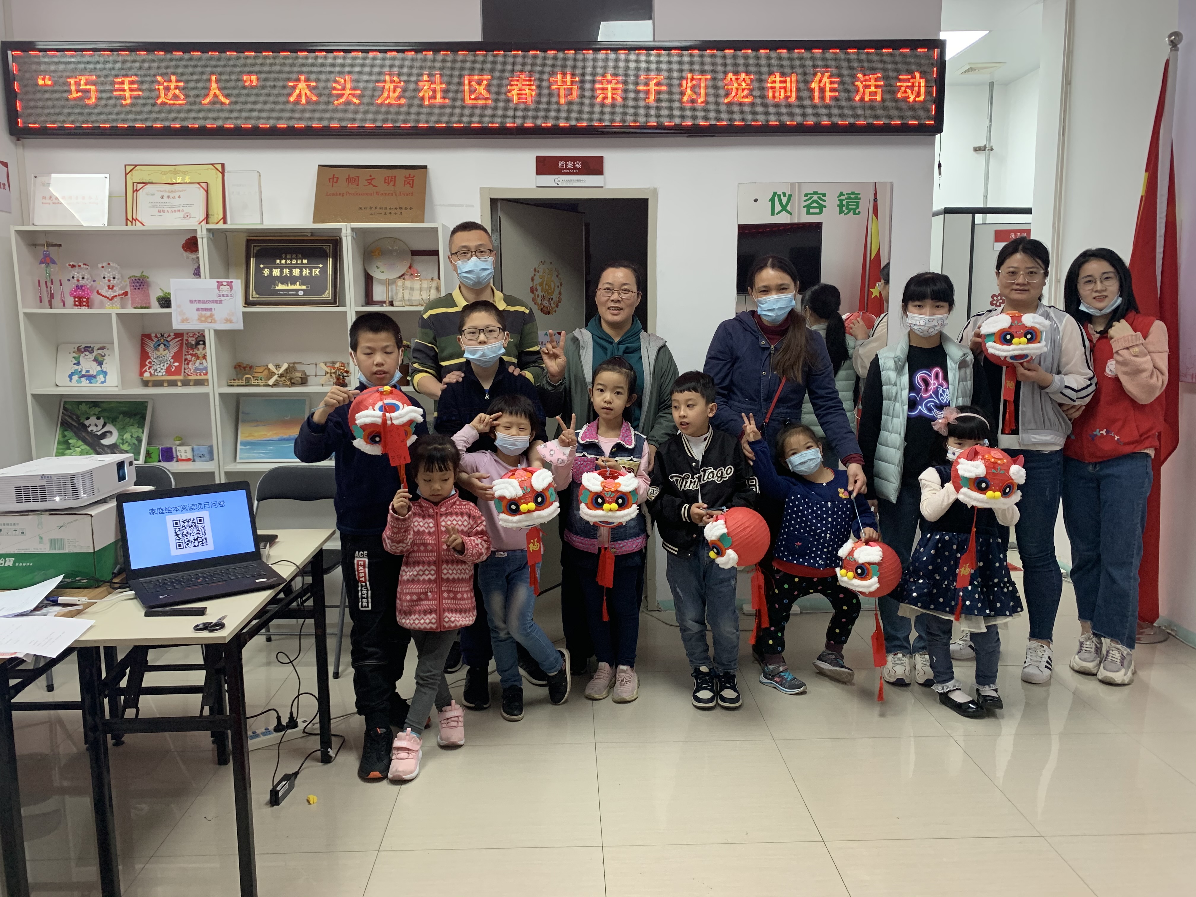 罗湖家园网讯:为了让社区家长与孩子感受我国新春佳节的喜庆氛围,增进亲子间的互动,木头龙社区于2月15日上午开展了“巧手达人”春节亲子灯笼制作活动。