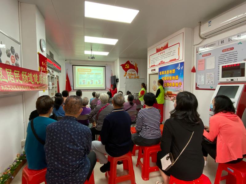 罗湖家园网讯:为提高社区居民的肠道健康意识,了解和掌握正确的健康生活方式,树立健康的生活理念。木头龙社区以党建为引领,于2021年3月29日上午在党群服务中心一楼开展了“肠益有道”居民肠道健康讲座。