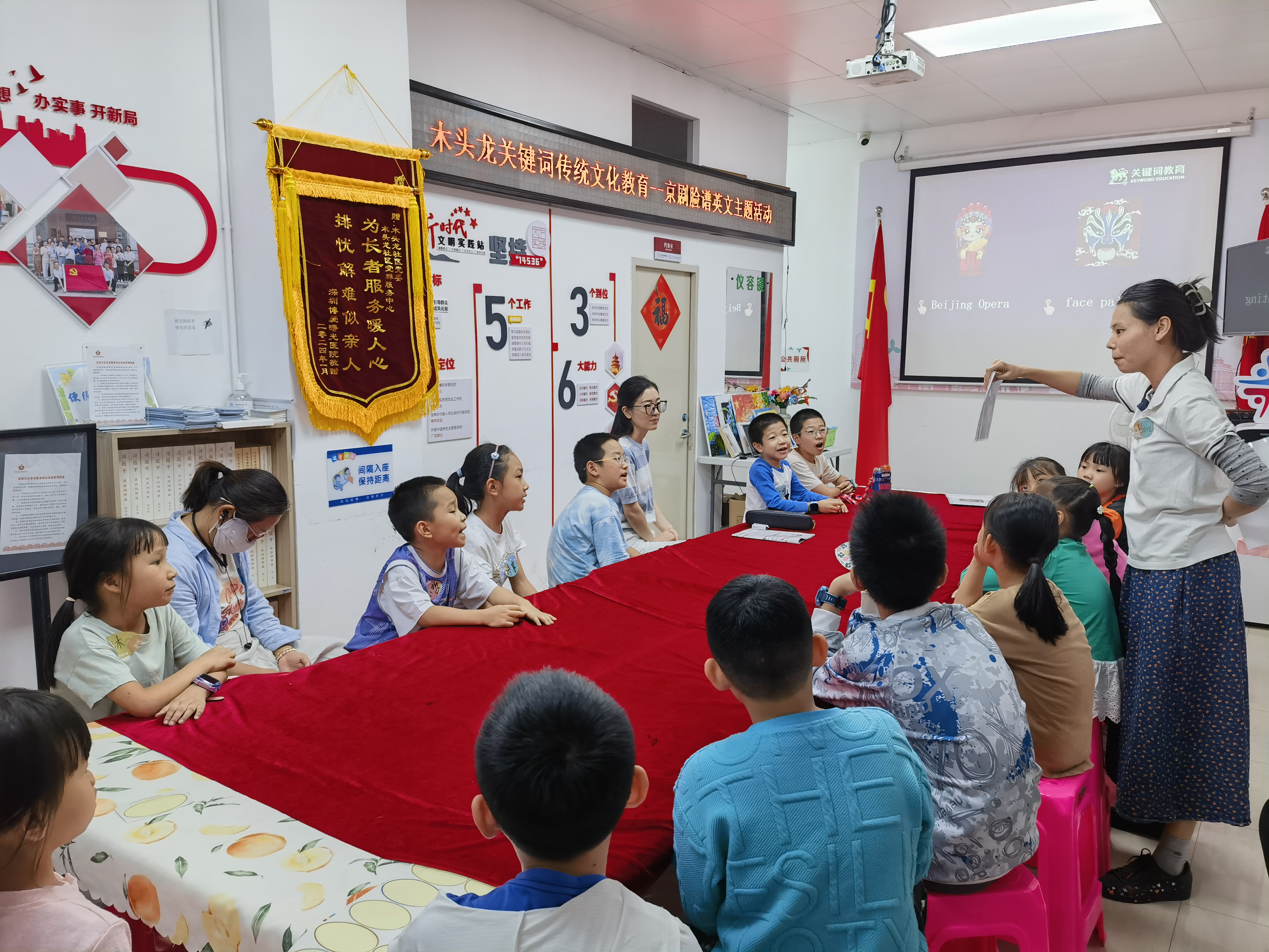 2024年10月26日,在木头龙社区党委的指导下,社区党群服务中心联合关键词教育机构开展了木头龙关键词传统文化教育--京剧脸谱英文主题活动。本次活动共有15名青少年参加。
