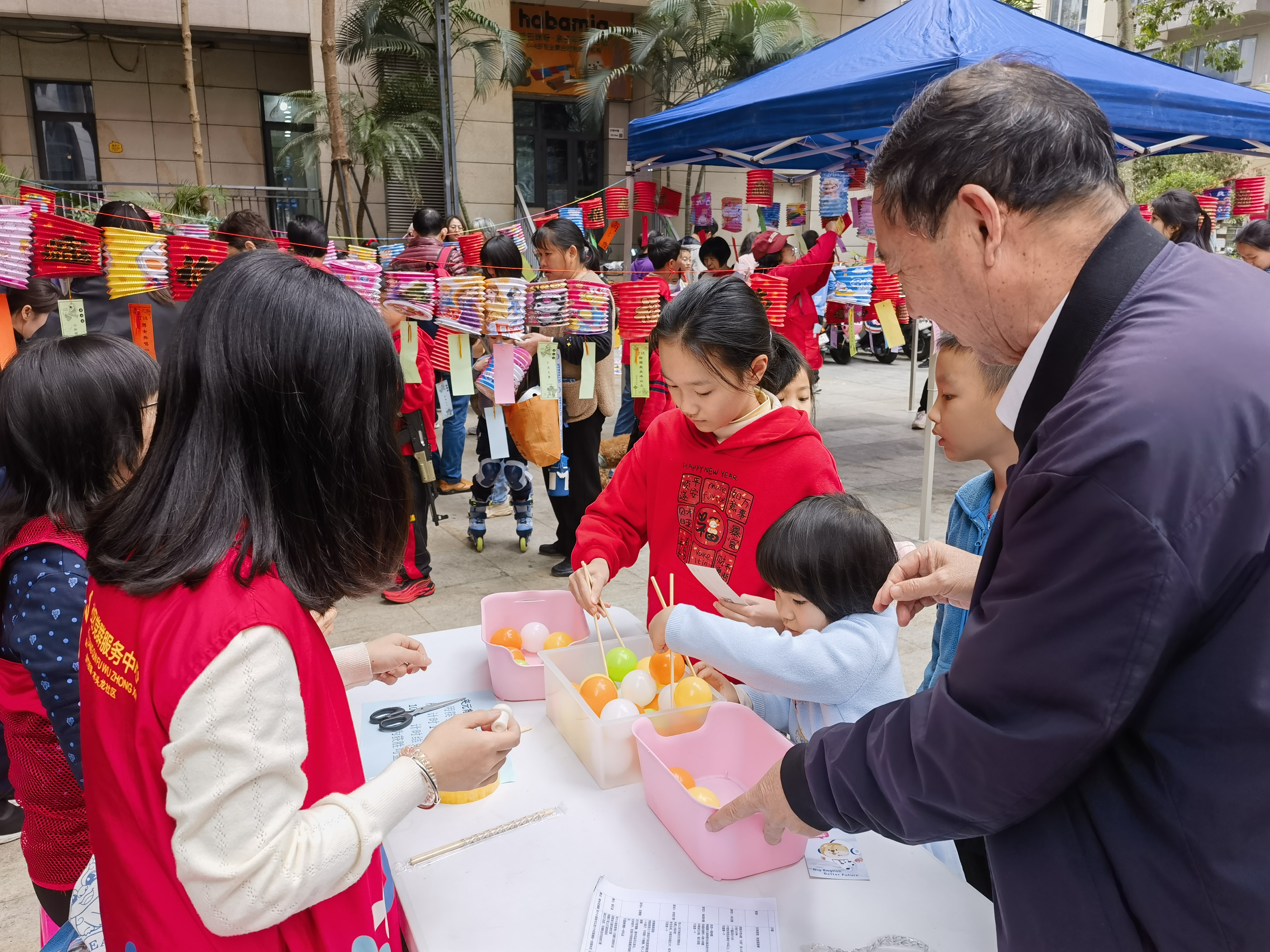 本次活动以“传承文化,趣味元宵”为主题,通过设置了猜灯谜、夹元宵、套圈、单词拼图等充满节日元素的趣味游戏与孩子们共迎佳节。活动中,猜灯谜,富含传统文化知识的谜题,让孩子和家长们不禁驻足思索,来体会灯谜的魅力和古人的智慧;单词拼图,以元宵节传统文化知识为主题,让孩子们在中西文化的碰撞中进一步学习传统文化知识;夹元宵、套圈、打靶等充满挑战的游戏,不仅激起了孩子们高涨的参与热情,更让他们体会到了节日 的欢乐。整个活动期间,现场气氛热烈,欢声笑语不断,处处洋溢着节日的氛围。