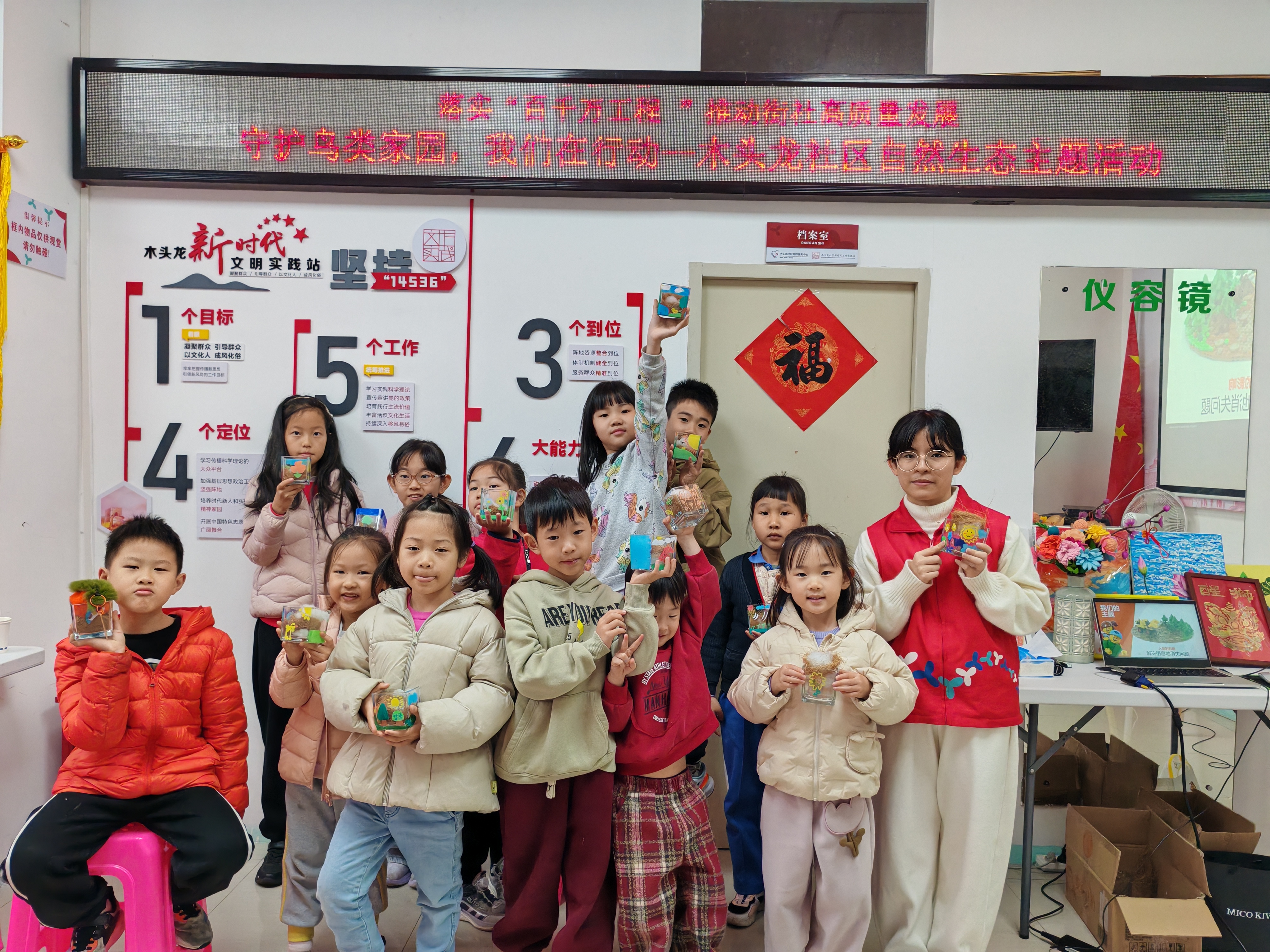 此次活动不仅加深了孩子们对鸟类栖息地保护的认知,锻炼了他们的创造力和想象力,更在他们心中播下了守护自然的种子。未来,木头龙社区还将持续开展相关服务活动,带领青少年儿童亲近自然、爱护自然,共同建设绿色家园。