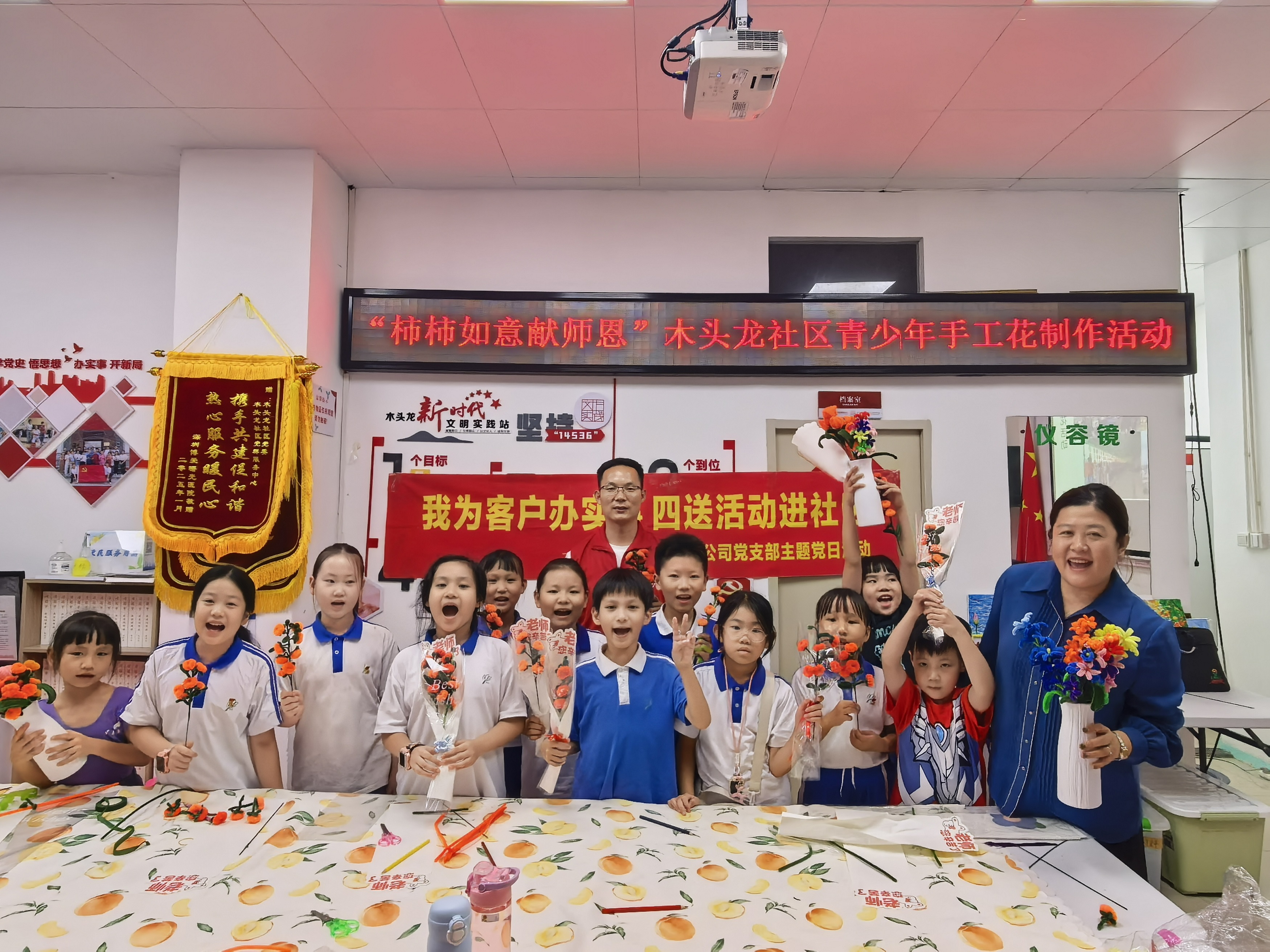 2025年9月9日晚上,在木头龙社区党委指导下,木头龙社区党群服务中心联合中国人寿,共同开展“柿柿如意献师恩”青少年手工花制作活动,15名青少年积极参与。