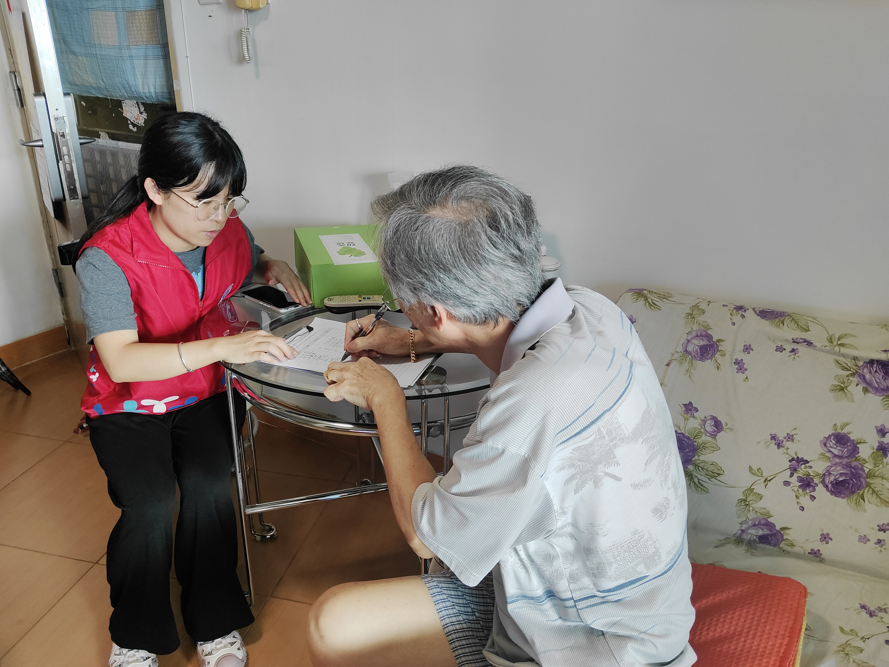 此次探访行动由木头龙社区党委统筹部署,联动慈善组织、社会团体、志愿者等,形成“党组织牵头、多方参与、资源共享”的服务格局,为探访行动注入多元力量。探访过程中,社区工作人员与志愿者们分为4支小队,带着精心准备的物资、节日祝福及防风知识宣传单,逐一走进特殊群体家中。在独居老人叶奶奶家,探访者不仅送上中秋水果,还细致检查家中水电以安全和门窗的稳固性,陪老人唠家常、话中秋、宣传防风知识。每到一户,社工工作人员和志愿者们都耐心倾听居民心声,认真记录需求情况,同时送上防台风知识,协助检查家中水电安全等。木头龙社区工作人员及志愿者用拉家常、送关怀、提安全的方式,让探访不止于“送物资”,更成为“暖民心”的情感交流。