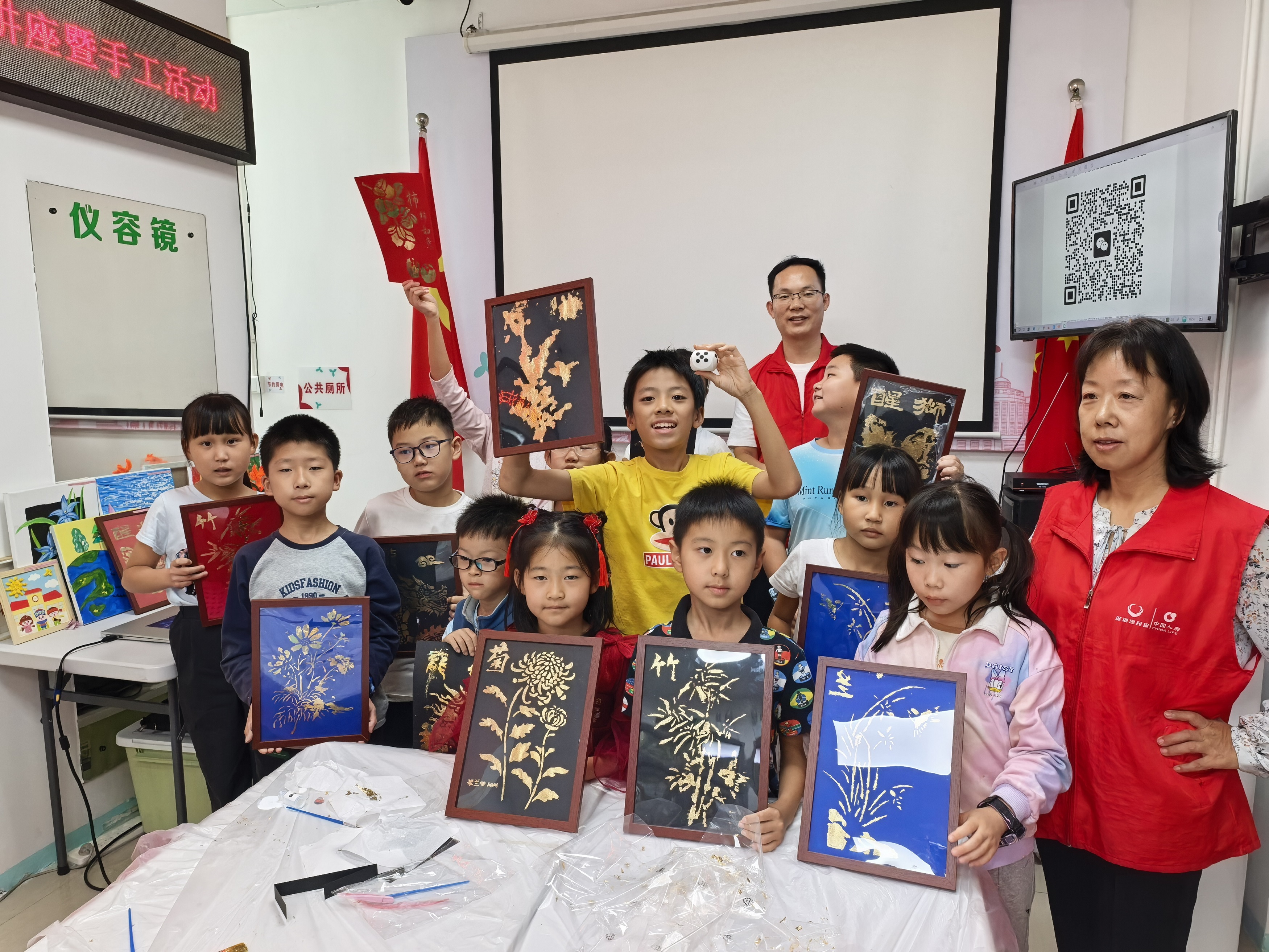 活动伊始,深圳前海合作区人民法院人民陪审员陈剑军同志以通俗易懂的语言为亲子家庭解读《中华人民共和国未成年人保护法》核心要点,结合贴近生活的情景模拟与趣味知识问答,将抽象的法律条文转化为可感知的生活准则,有效加深了孩子们对自身权益保护的认知,也让家长们进一步明确了监护责任。随后的手工环节中,工作人员带领大家创作金箔画,醒狮昂首、中国龙腾飞、梅兰竹菊清雅绽放,一件件作品栩栩如生,既锻炼了孩子们的动手能力,也在创作中厚植了传统文化情怀。