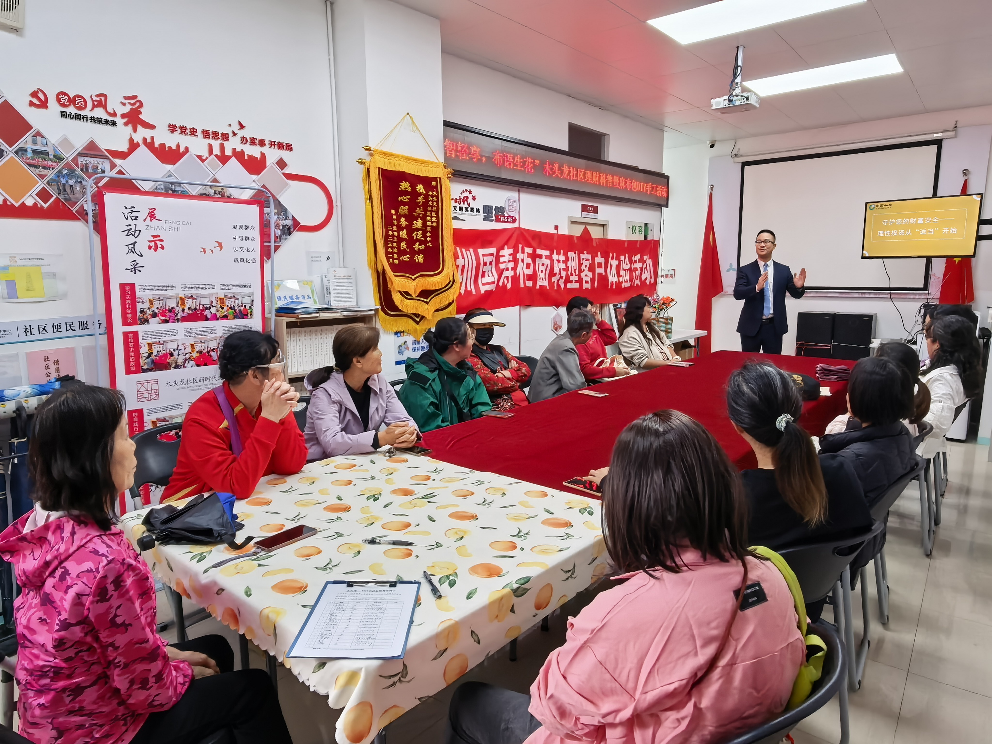 家园网讯: 2025年12月10日,在木头龙社区党委的指导下,木头龙社区党群服务中心联合中国人寿罗湖支公司党支部,成功开展“财智轻享,布语生花”理财科普暨麻布包DIY主题活动。此次活动以“金融知识普及+手工创意体验”的形式,为社区妇女搭建起学习交流的平台,既提升了大家的理财素养,又丰富了精神文化生活。