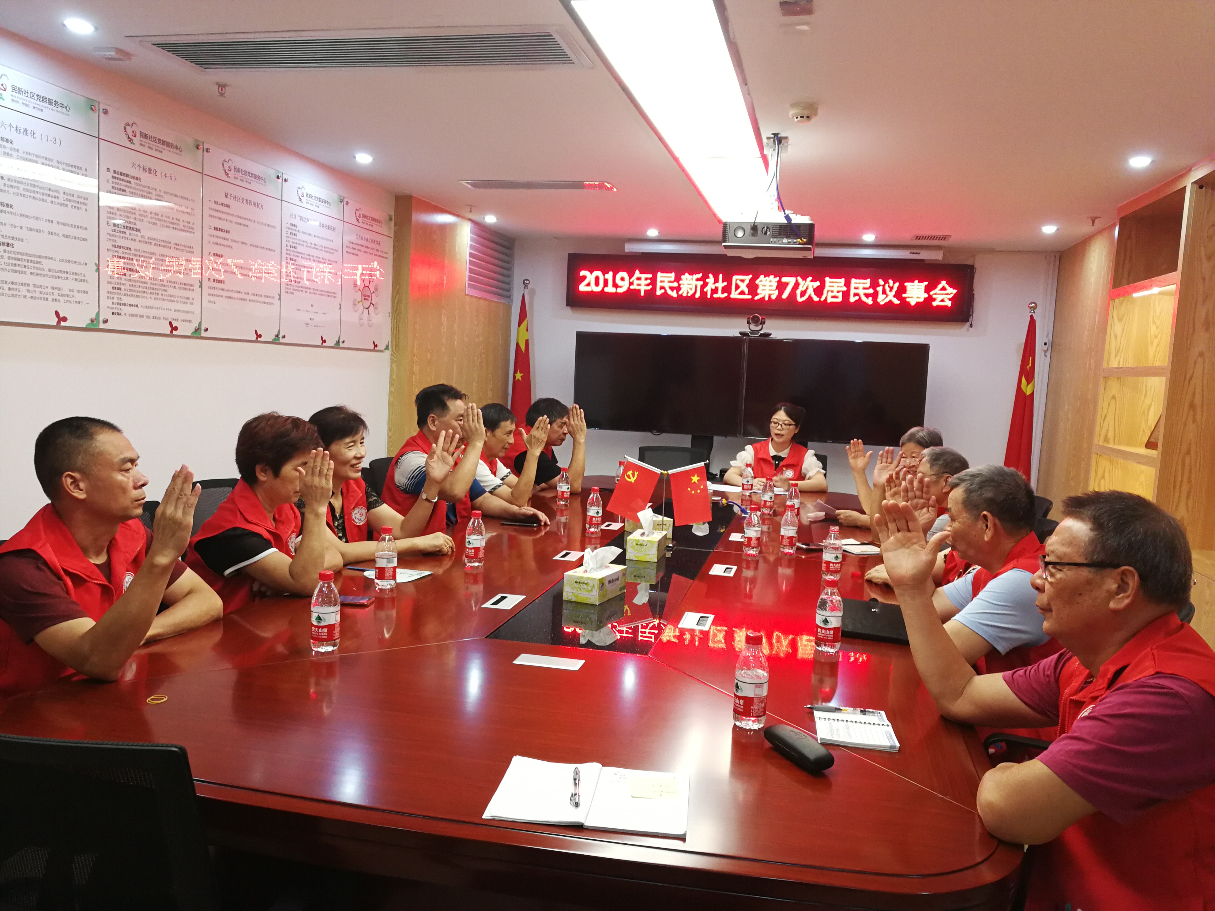 罗湖家园网讯:2019年8月9日下午,民新社区在二楼会议室召开了2019年第7次居民议事会,会议由社区党委委员、工作站副站长吴宵娴同志主持,社区居民议事会成员参加了此次会议。