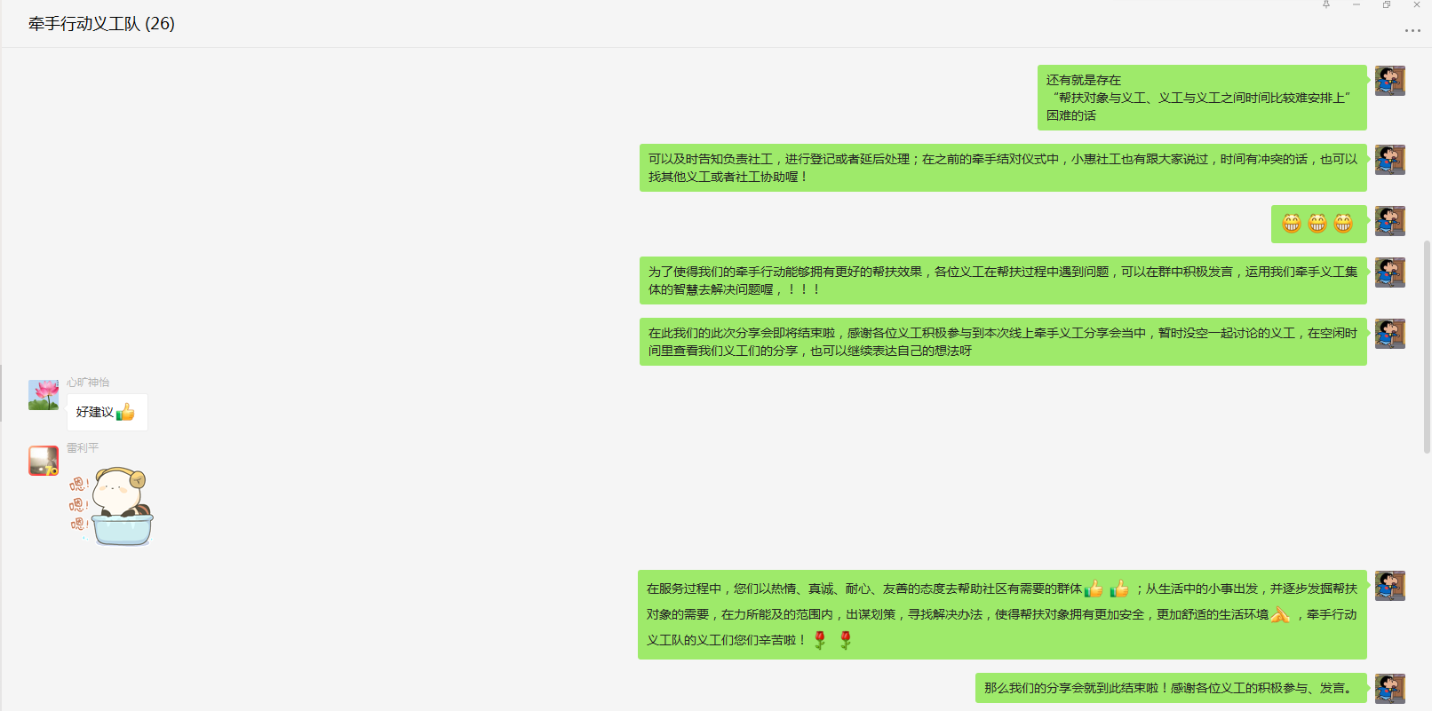 本次活动通过义工之间的分享互动、解答疑惑,提升了牵手义工之间的熟悉度,进一步肯定了自身服务的价值,同时亦学习到探访知识,有助于此后的服务实践。