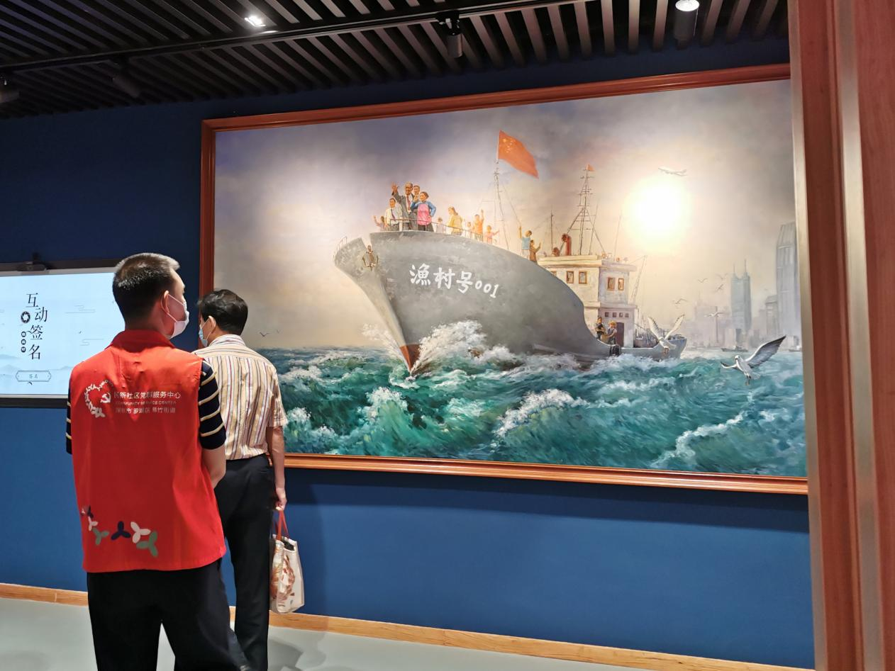 在渔村村史展览馆讲解员的介绍下,渔民村的奋斗历史如画卷般徐徐铺开,一张张浮雕、一部部记录短片以及一张张老照片,生动地讲述着那些激奋人心的故事,党员们纷纷拿起手机记录下所见所闻。这些珍贵的历史资料,折射出了中国改革开放史的波澜壮阔,带领着大家重温了“春天的故事”,让在场的党员们不由连连感慨。