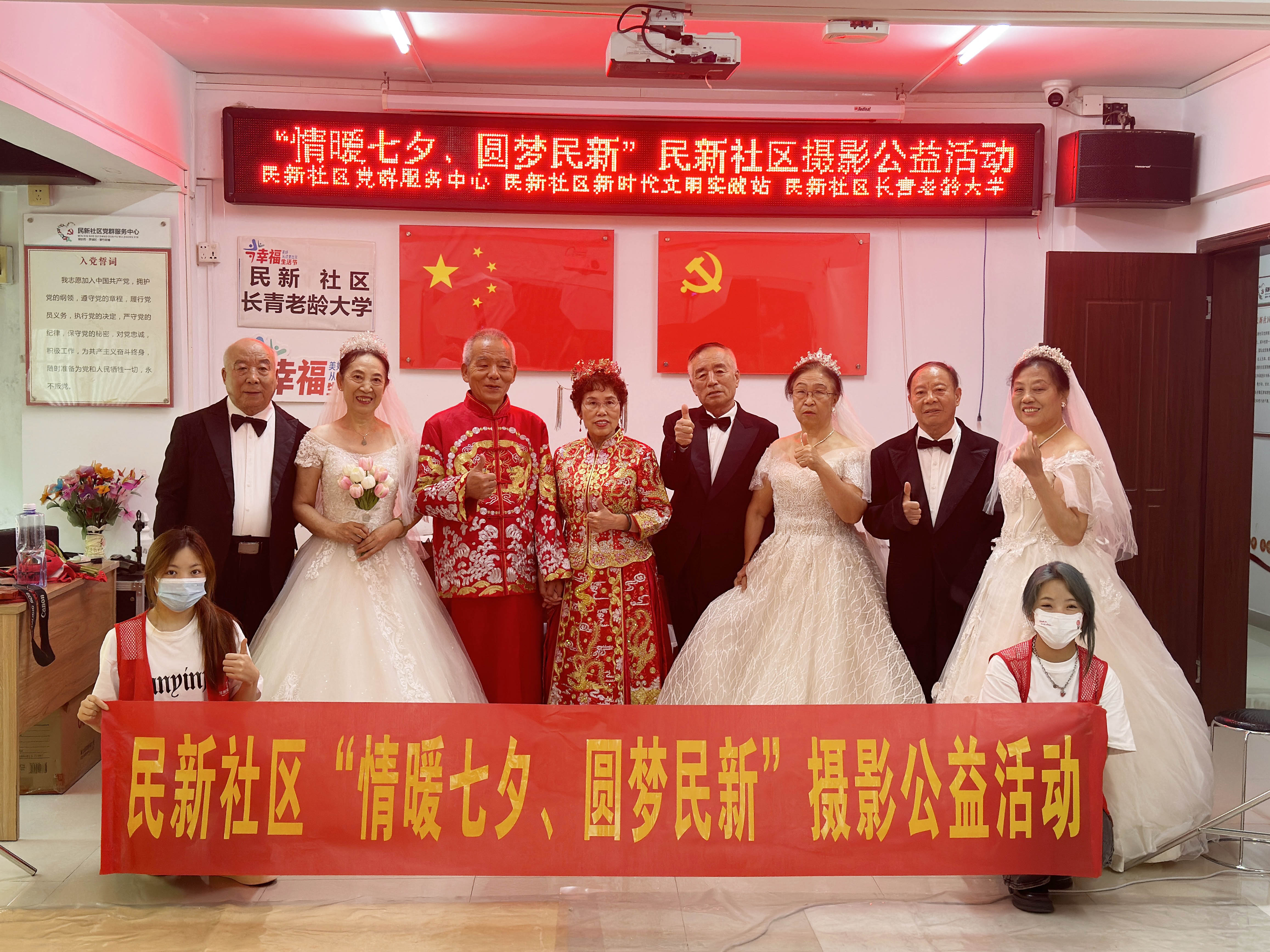 2024年8月8日,民新社区链接爱心企业资源蒙娜丽莎婚纱摄影,为社区50岁以上长者拍摄婚纱写真照,吸引50位社区长者参与。
