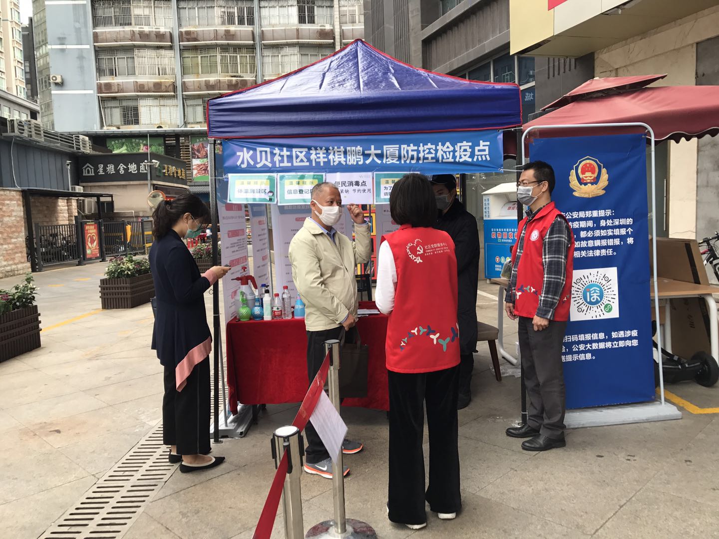 罗湖家园网讯:2020年2月28日翠竹街道党工委副书记、人大工委主任梁柱红同志带队来到水贝社区指导社区防疫工作,强调社区党委要担责任、强落实,坚决守好社区疫情防控阵地。