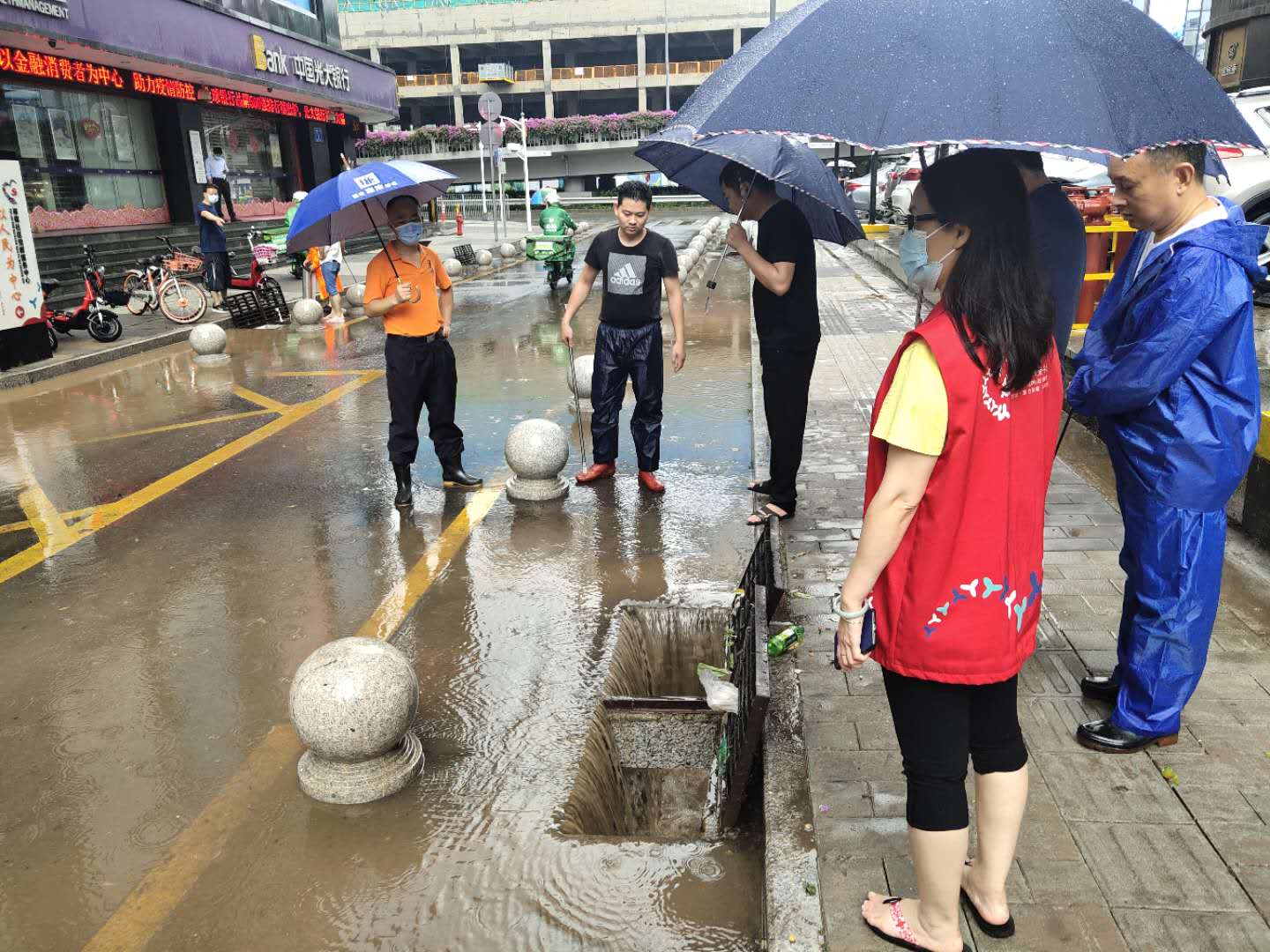 水贝社区周末“雨前、雨中、雨后”巡查抢险保安全