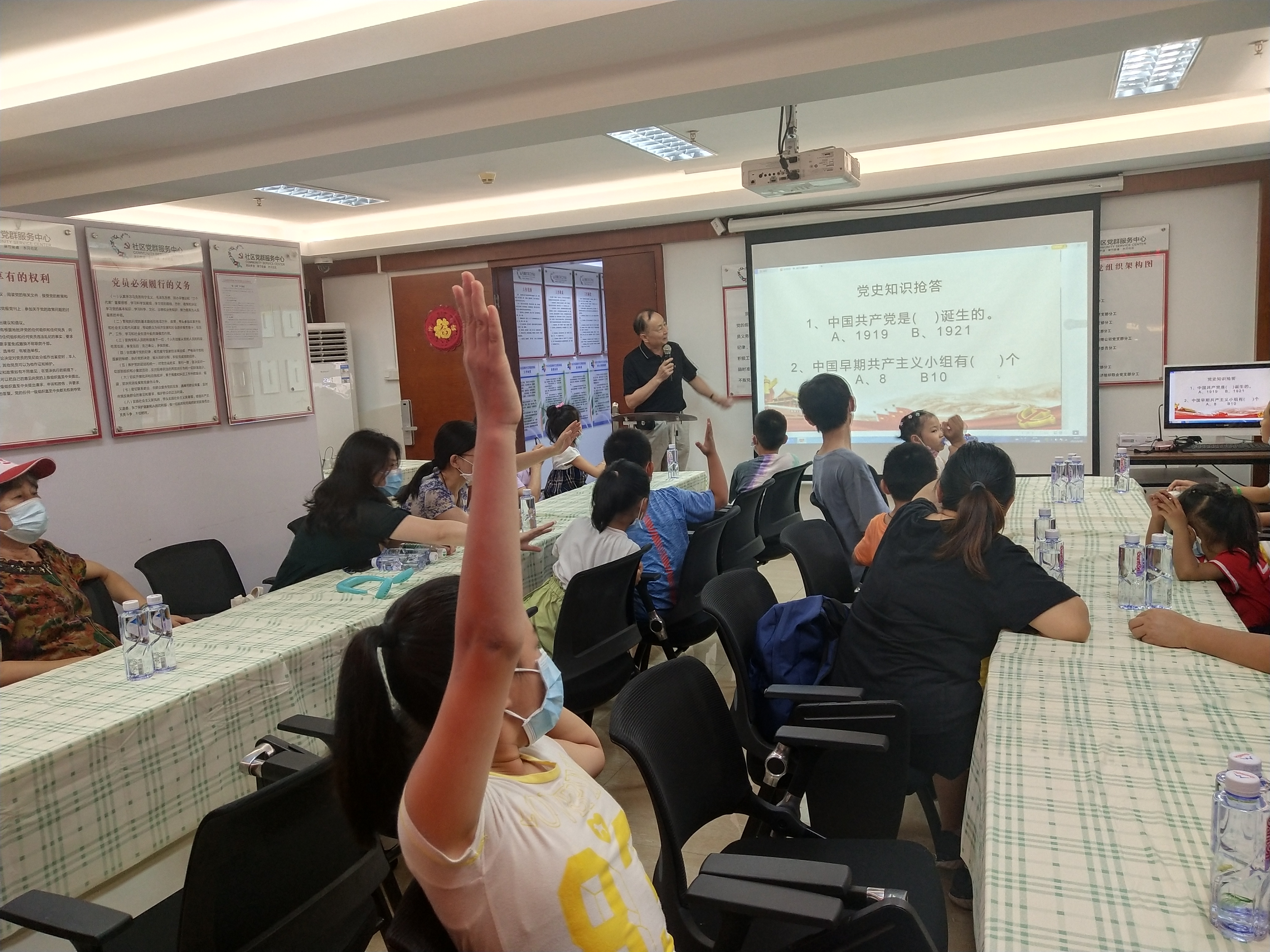 陈根亮用通俗易懂的语言详细介绍了中国共产党走过的百年历程:新民主主义革命时期、社会主义革命和建设时期、改革开放和社会主义现代化建设新时期和中国特色社会主义新时代的重要事件,声情并茂地上演了一场党史“盛宴”。随后进行的党史知识问答竞赛,把现场的气氛推向了高潮,小朋友们积极举手抢答,纷纷争当“学党史小达人”。