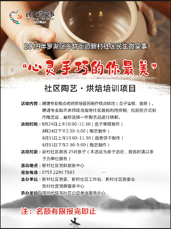 各位社区居民大家好,社区亲子陶艺活动开始招募了