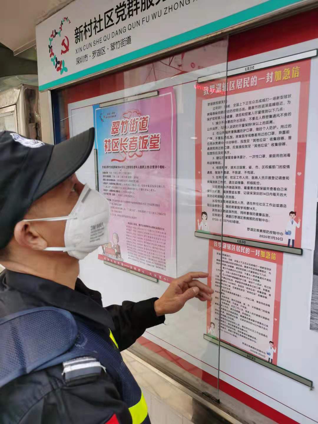 月28日,在社区各宣传栏张贴由深圳市疾病预防控制中心、罗湖区疾病预防控制中心,印制的新型冠状病毒感染的肺炎预防措施画报、及宣传画报。