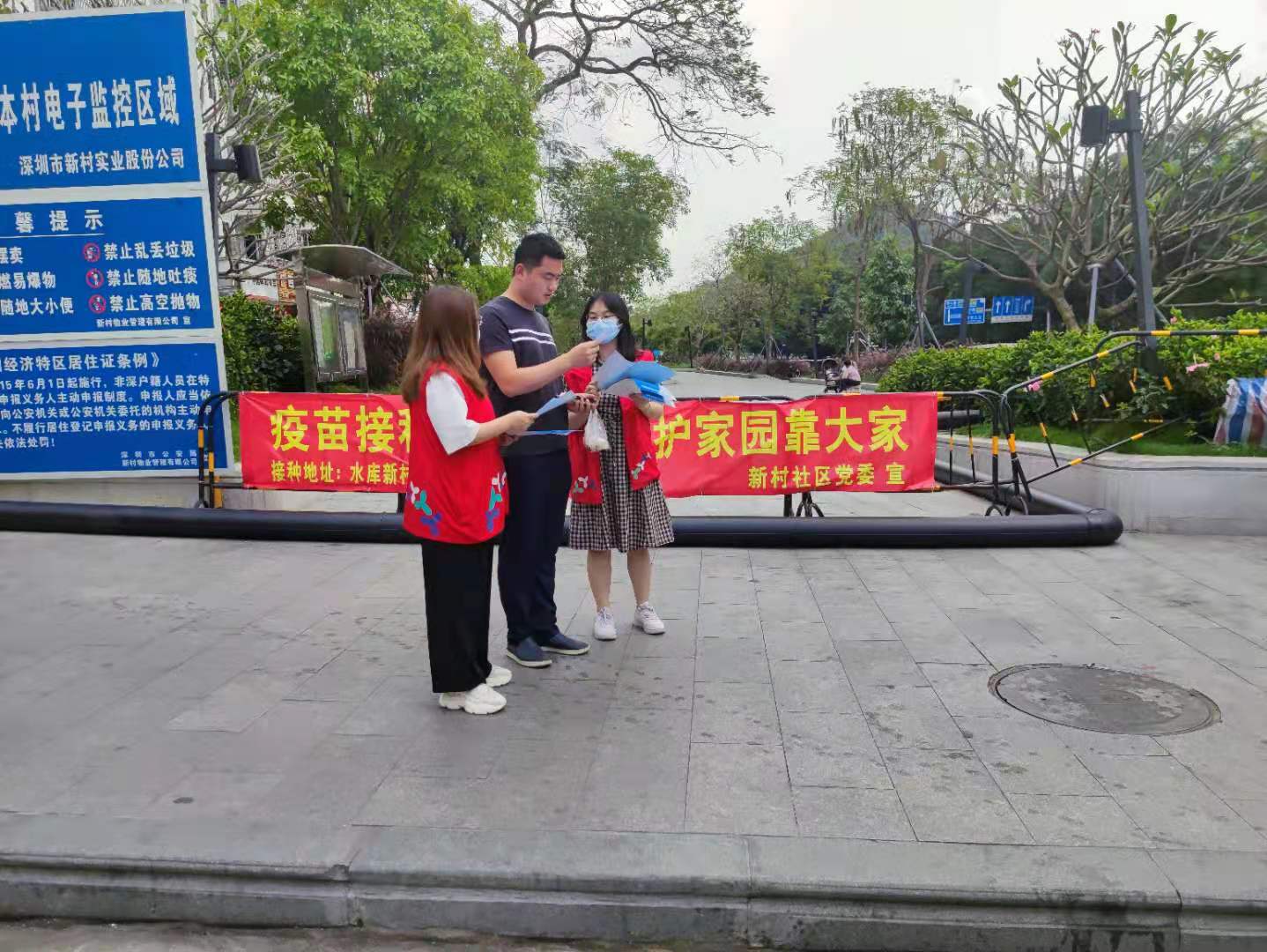 新村社区通过微信居民群通知、电话通知、入户宣传单和张贴横幅等多种形式进行新冠疫苗接种宣传,普及新冠肺炎疫苗相关知识,解答群众关于接种新冠肺炎疫苗的相关疑问,并鼓励大家积极参与新冠疫苗接种,共同筑起抵抗新冠疫情的防疫长城。