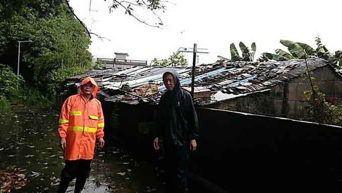 2017年8月23日,台风“天鸽”正面来袭!梧桐山社区党委副书记带队巡查老瓦房、建筑工地、山体滑坡地带。