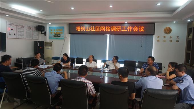 2017年9月19日下午,东湖街道党工委委员、民生事务部部长陈新辉和东湖街道办网格中心聂新明所长到梧桐山社区召开网格调研工作会议。
