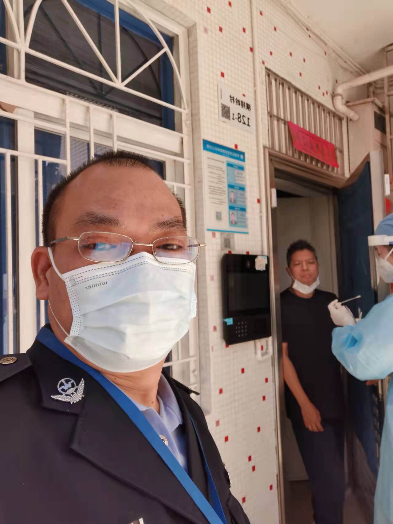2021年11月12日上午,梧桐山社区“三位一体”小组联同疾控中心上门给居家隔离重点人员进行核酸检测采样及健康随访跟踪服务。