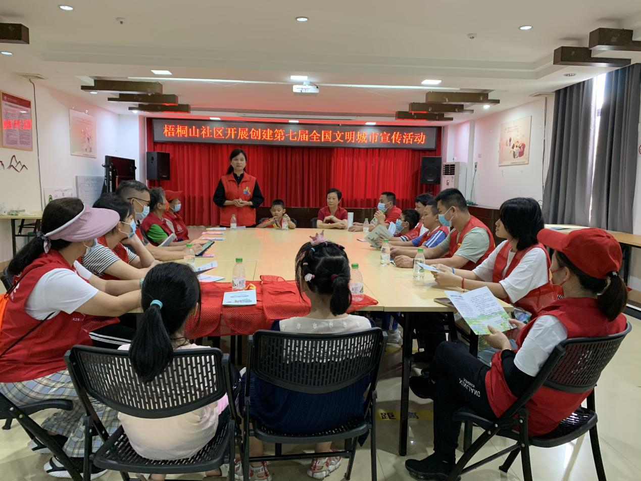 为积极响应全市创建全国文明城市号召,8月7日上午,梧桐山社区新时代文明实践站的志愿者在社区辖内的主次干道、路口、重要公共场所等地,重点开展各种不文明行为劝导、卫生大扫除,交通疏导等志愿服务,23名志愿者积极参与。