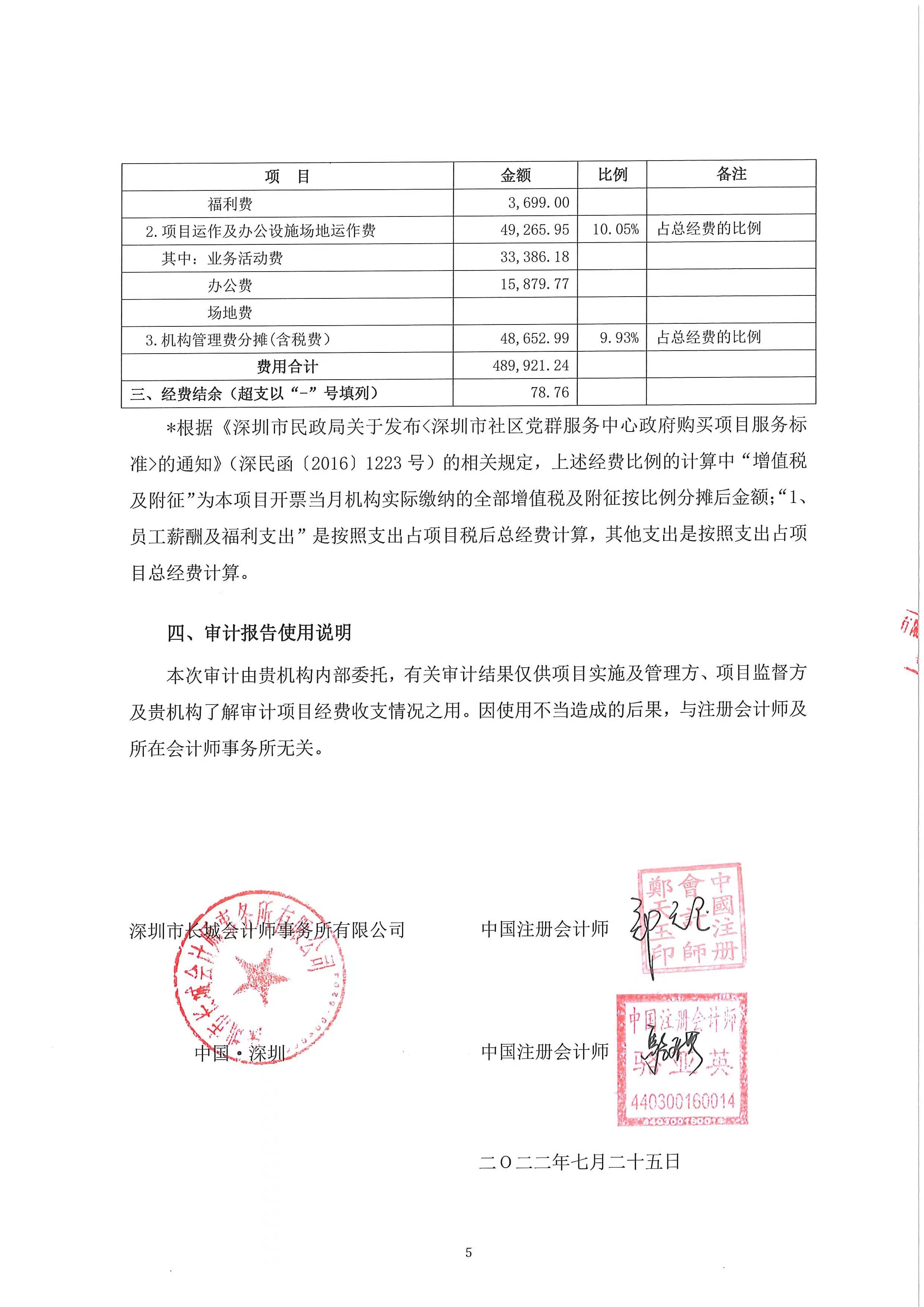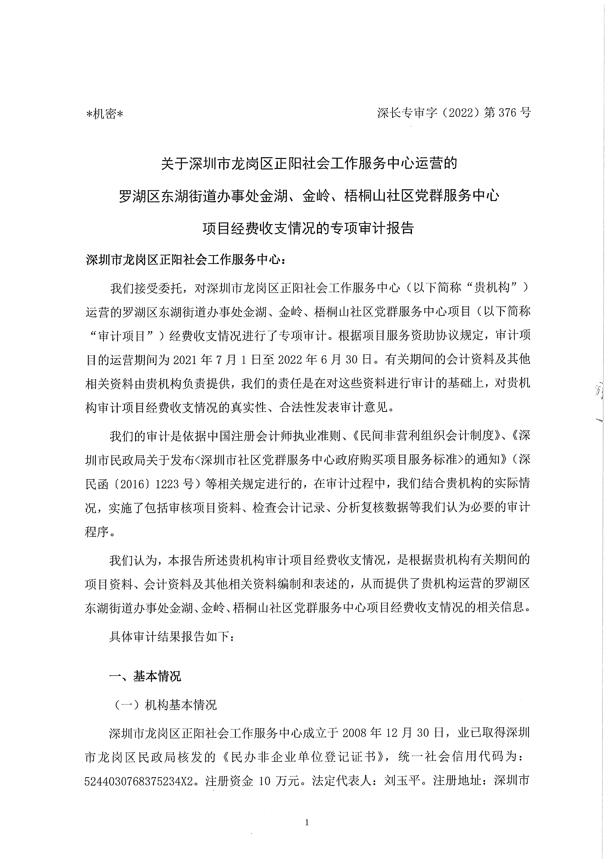 梧桐山社区党群服务中心2022年项目经济情况专项审计报告
