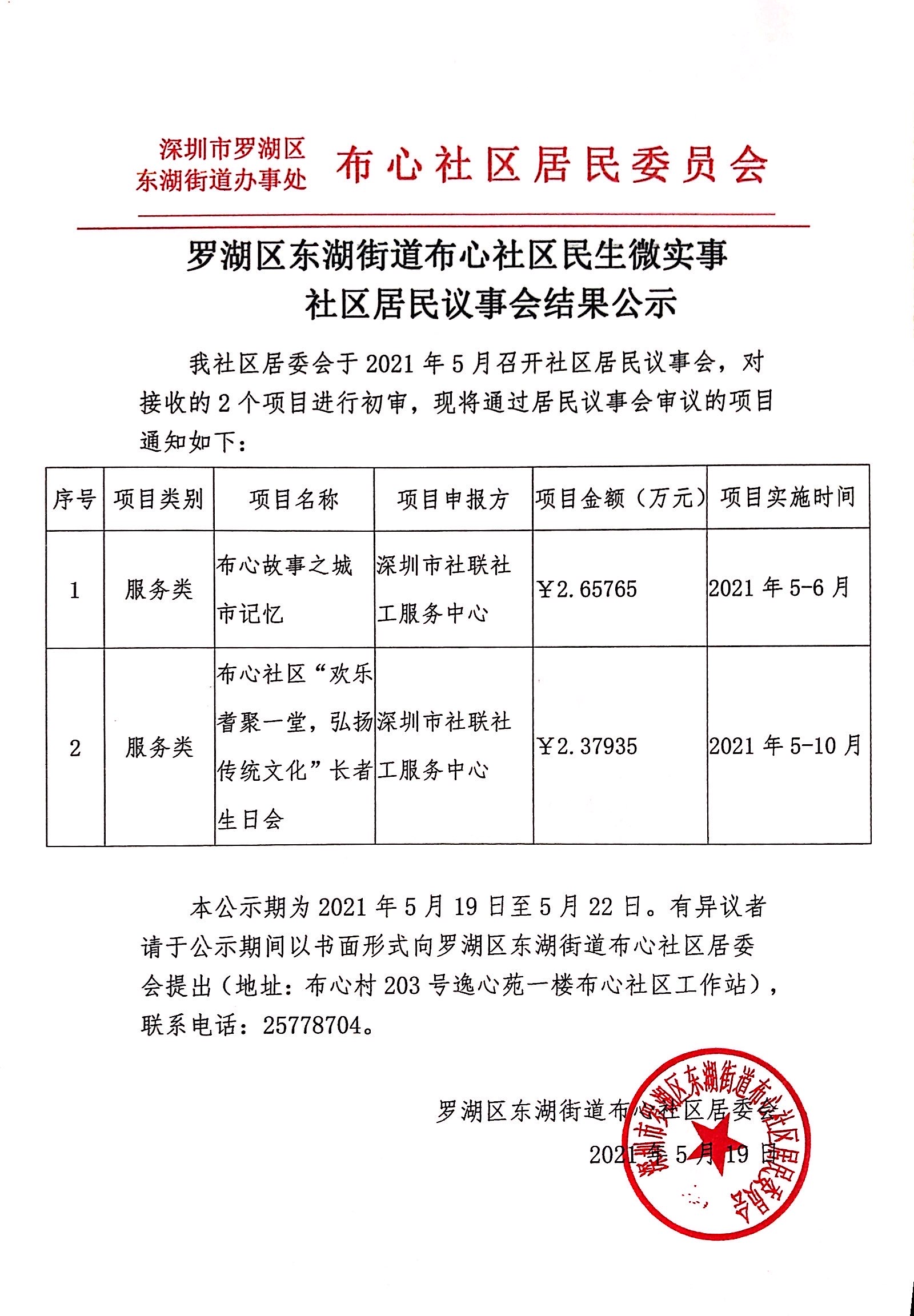 罗湖区东湖街道布心社区民生微实事社区居民议事会结果公示