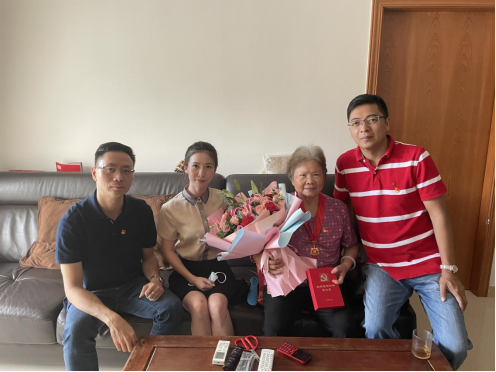 布心社区党委为光荣在党50年的老党员颁发纪念章