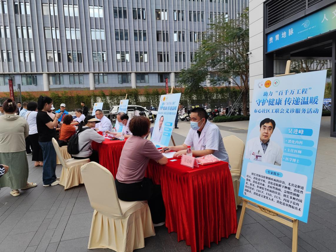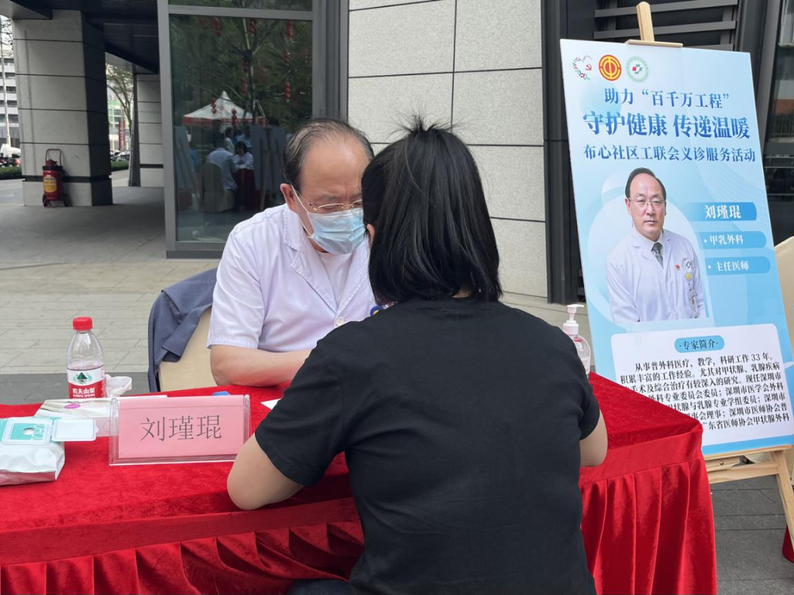 罗湖家园网讯:为满足辖区职工的健康需求,提升职工健康意识与自我保健能力,2025年4月11日下午,在东湖街道总工会、布心社区党委的大力支持下,布心社区工联会联合布心社区党群服务中心、罗湖区人民医院医疗专家团队、京基天韵府项目营销中心,在天韵府小区广场开展了“守护健康·传递温暖——布心社区工联会义诊服务活动”。此次活动汇聚了来自罗湖区人民医院肿瘤内科、胸外科、心血管内科等多学科权威专家团队,吸引了100 余名社区职工及其家属参与,为职工们提供了一场家门口的健康盛宴。