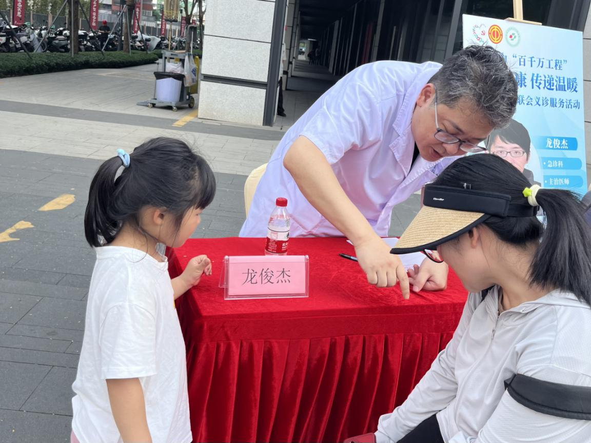 甲乳外科刘医生采用“视触结合”开展诊疗,为居民提供甲状腺及乳腺健康的专业指导。