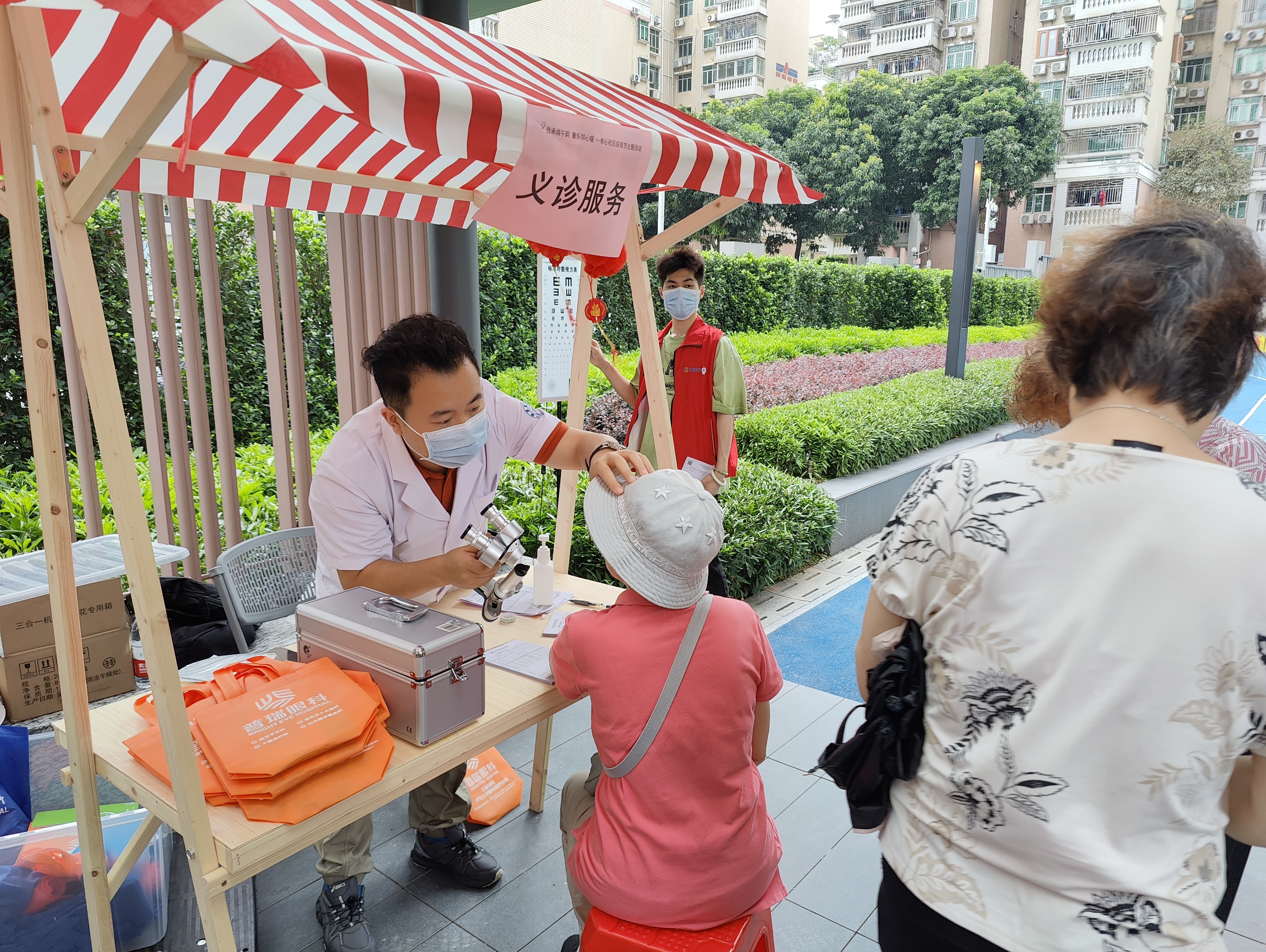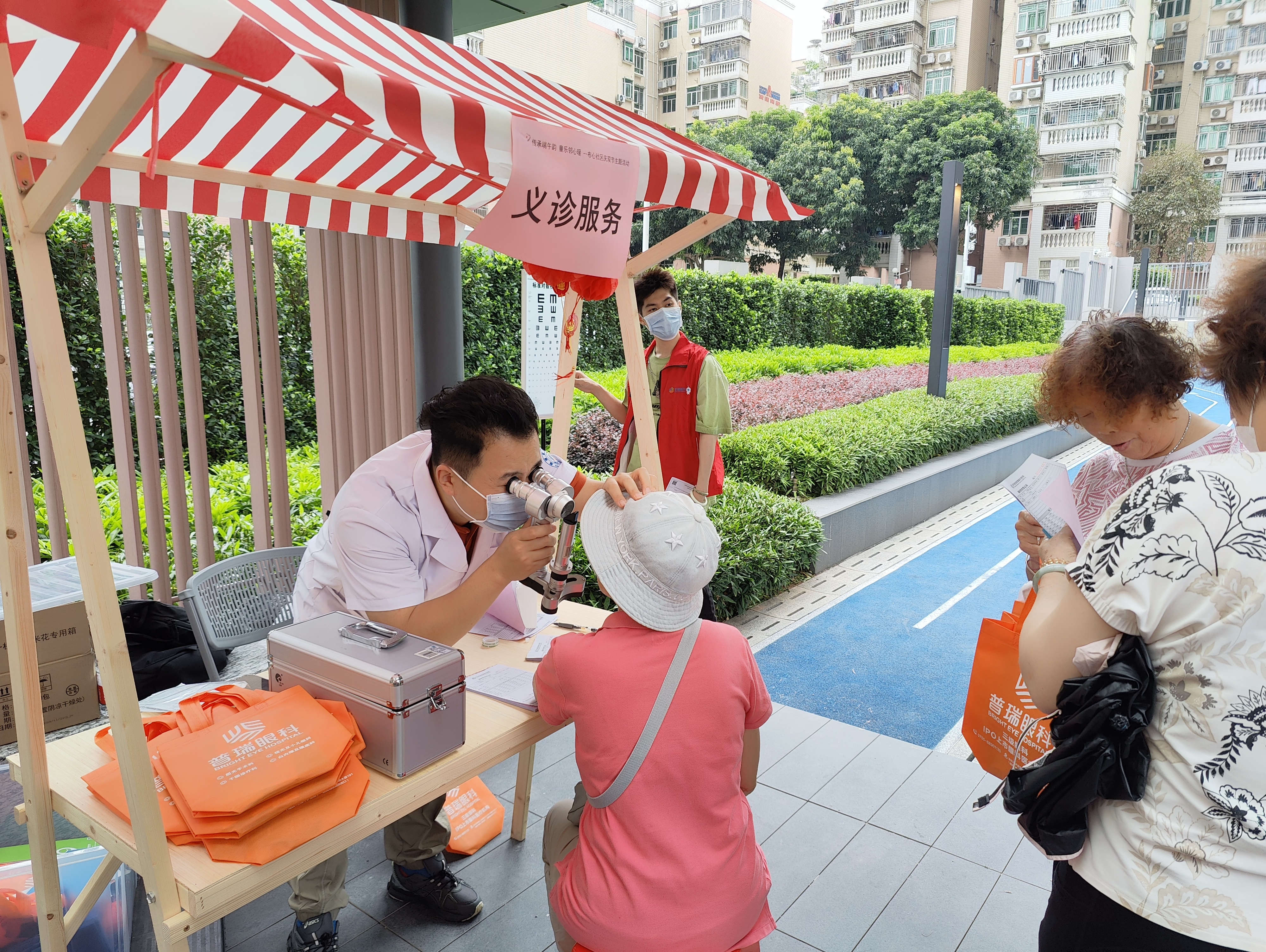 在便民服务区,专业的眼科工作人员为社区居民提供了免费的视力检测、白内障、青光眼筛查、眼底检查及干眼症现场康复治疗等服务,还向居民们普及了爱眼护眼知识,鼓励大家养成良好的用眼习惯,保护好自己的眼睛。