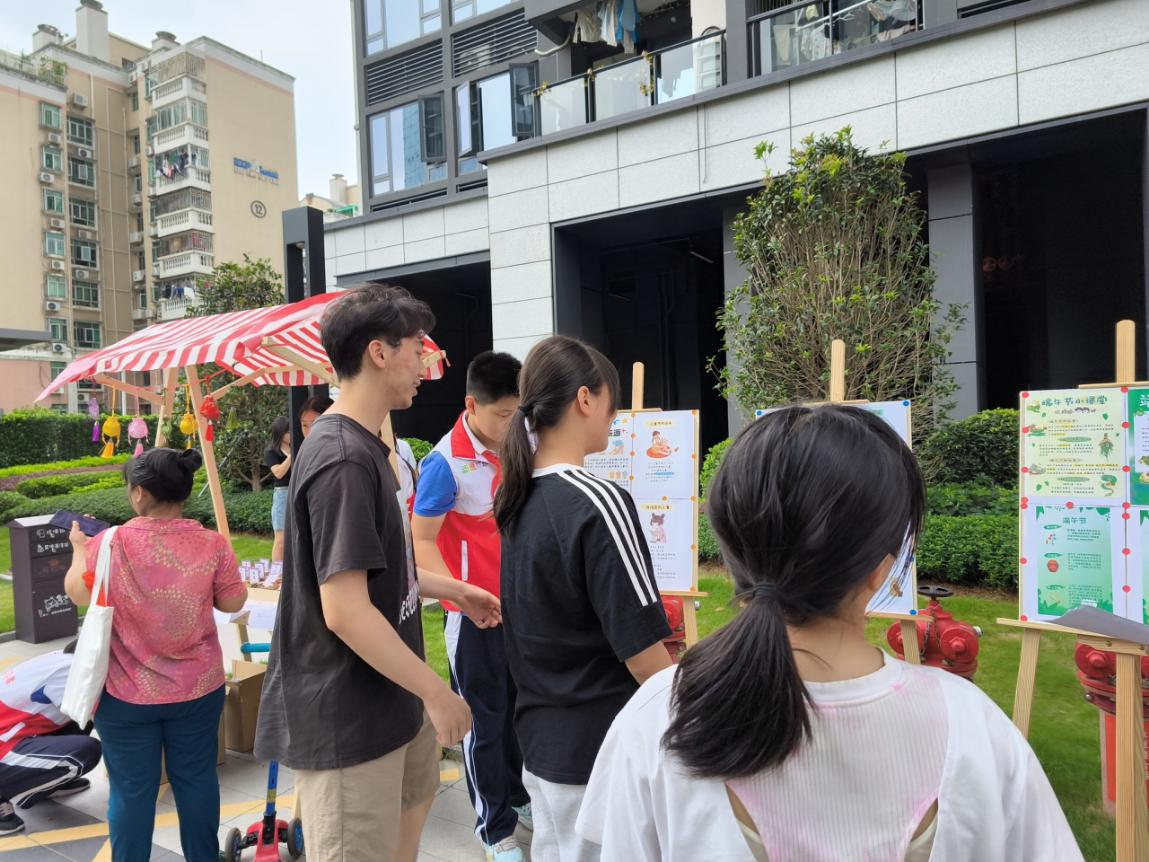 工作人员通过展板、宣传彩图和现场讲解的方式,向社区居民介绍了端午节的知识以及六一儿童节的意义。随后,千年端午习俗化身趣味考题,开启文化探索之旅,从粽叶飘香的传说,到龙舟竞渡的由来,再到挂艾驱邪的智慧,随着一道道题目解锁,屈原的家国情怀、千年民俗意蕴缓缓呈现,这场问答,不仅是一场智趣挑战,更让端午习俗在互动中“活”了起来,孩子们在这里了解到了端午节的赛龙舟、吃粽子、挂艾草等传统习俗,同时也感受到了儿童节的快乐与意义。