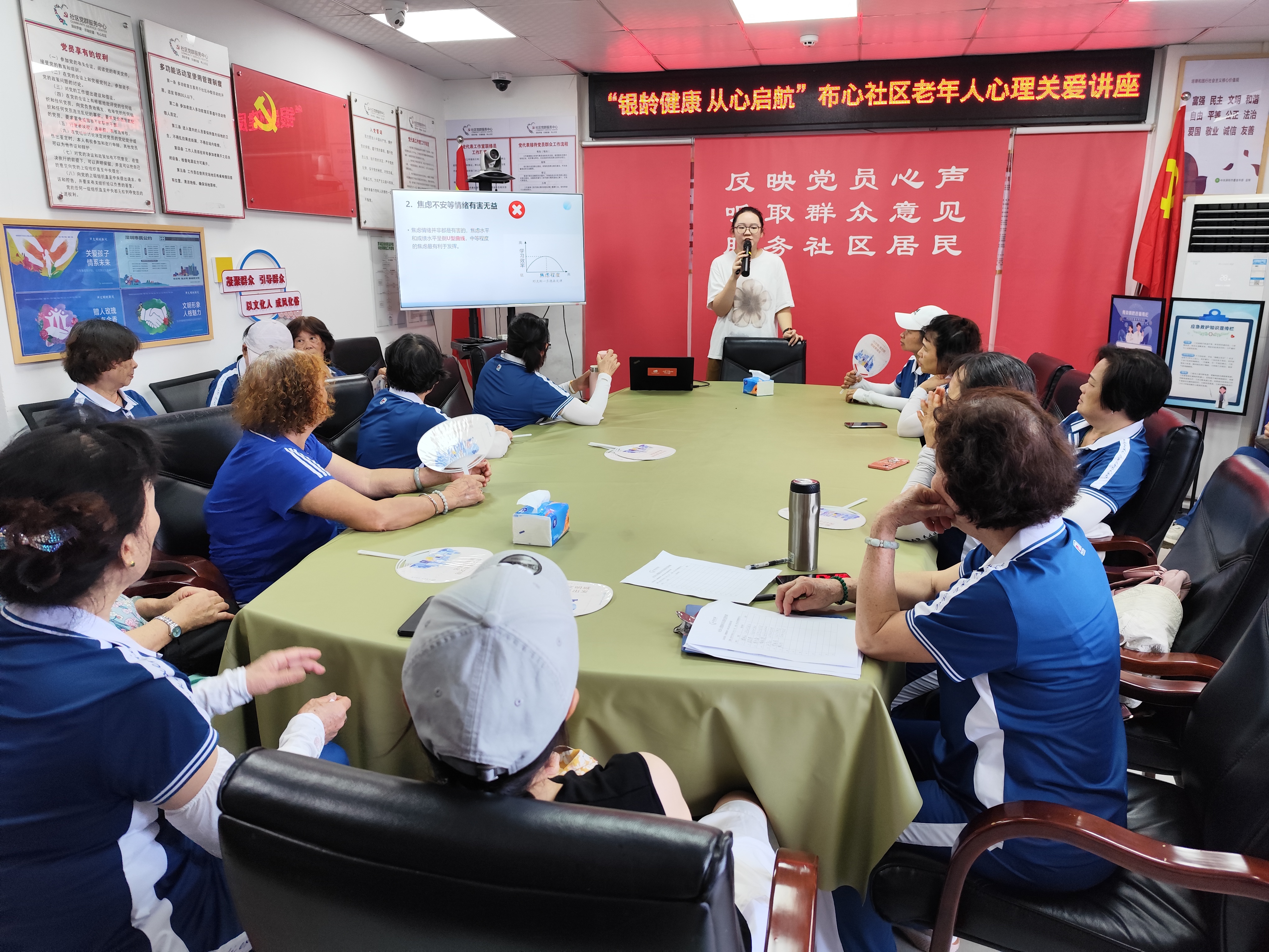 罗湖家园网讯:为切实关注社区老年人的心理健康,普及心理健康知识,强化健 康生活理念。2025 年 7 月 8 日上午,在布心社区党委的大力支持下, 布心社区党群服务中心联合东湖街道心理服务站开展“银龄健康 从 心启航”布心社区老年人心理关爱讲座,活动旨在通过科学知识讲解 与趣味实践体验,帮助 30 位社区老年人掌握实用的心理调适技巧, 提升晚年心理幸福感。