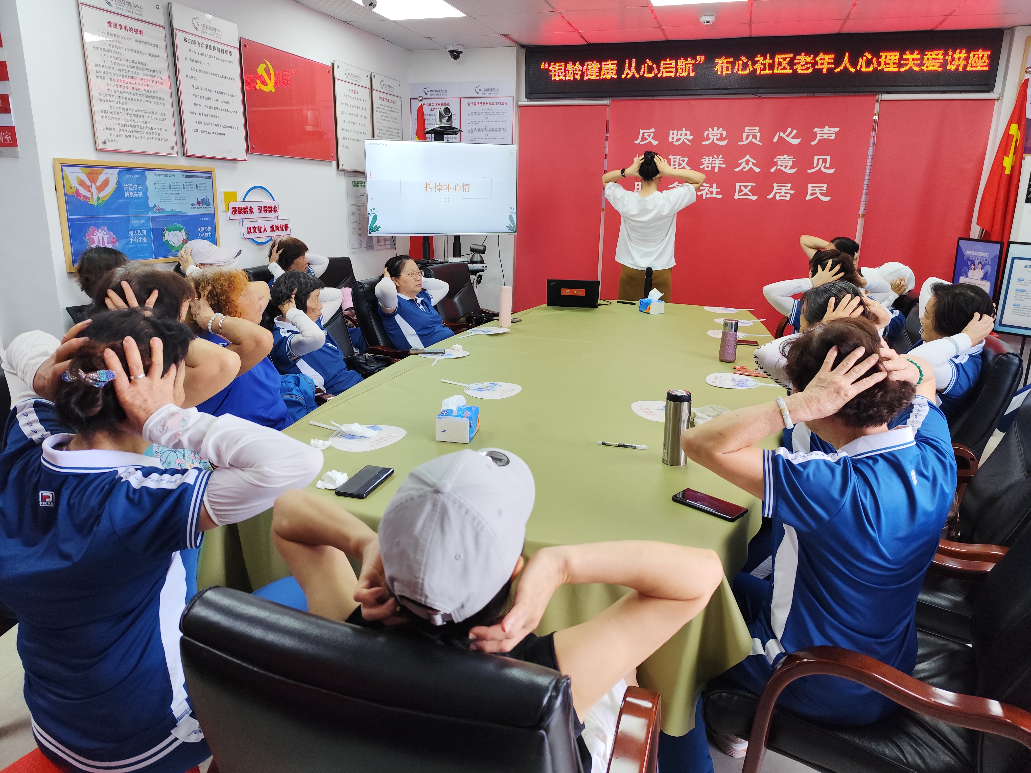 此次心理健康讲座不仅让老年人的身心得到了有效放松与调节, 更引导他们对心理健康建立了全新的科学认知,成功传递了积极健康 的生活理念。布心社区党群服务中心将持续关注老年群体心理需求, 不断提升辖区老年人的健康素养与综合健康水平,让“银龄”生活更 加科学、健康、快乐,真正实现从“心”启航的幸福晚年。