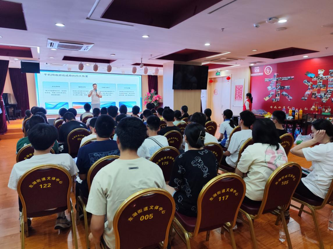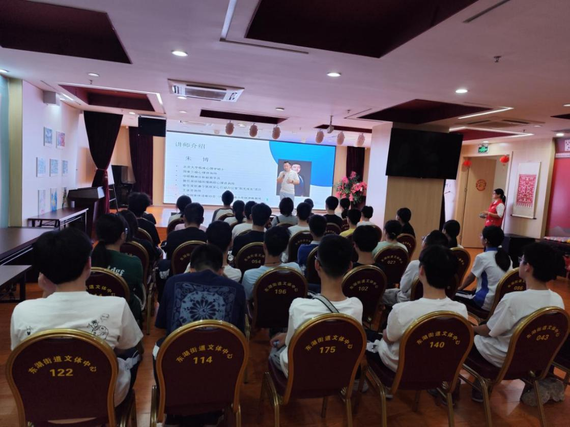 罗湖家园网讯:为进一步加强青少年网络素养教育,提升网络成瘾问题的认知与干预能力,2025年7月18日上午,在布心社区党委的大力支持下,布心社区党群服务中心社联社工联合东湖街道办心理服务站在街道文体服务中心开展以“从心护航 向阳成长”为主题的心理专题讲座。培训围绕网络成瘾的形成原因、其与青少年抑郁焦虑的关联及家庭应对策略等核心内容开展,为青少年提供了专业且实用的知识指导。