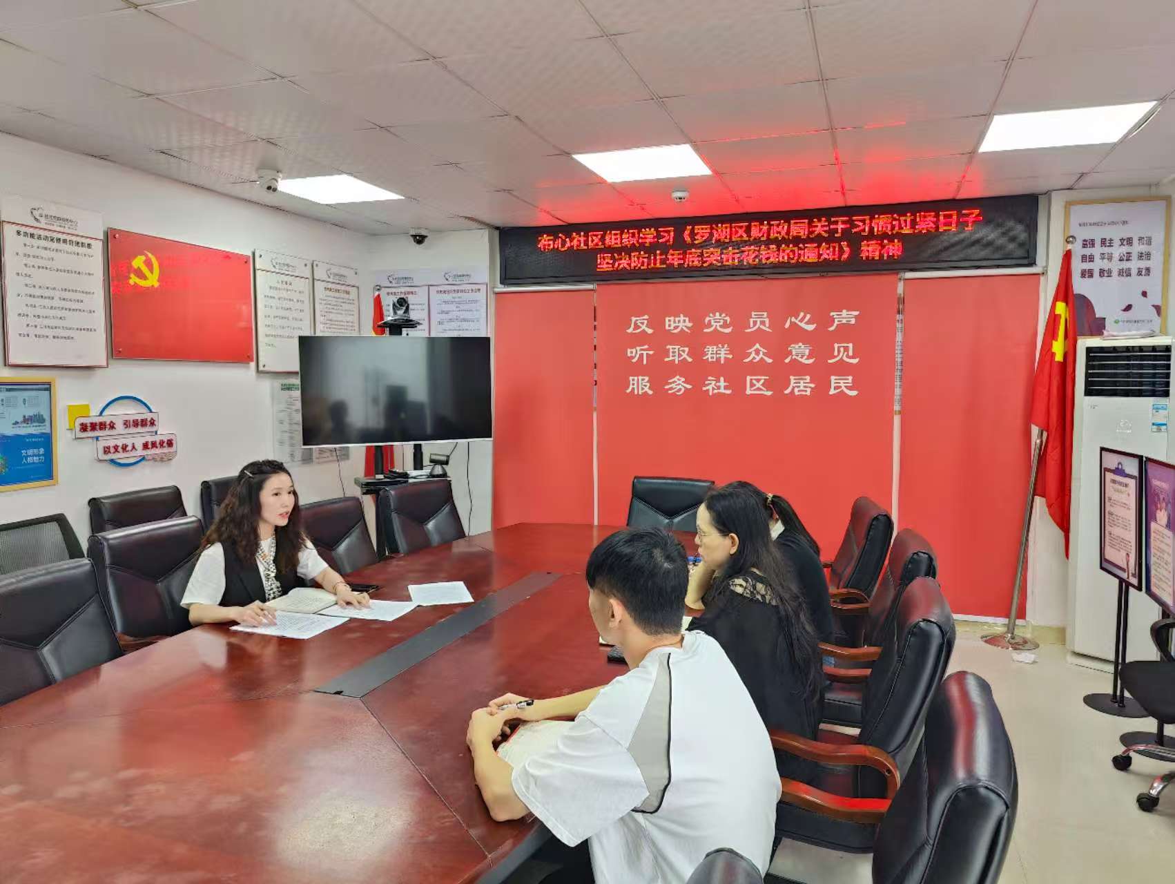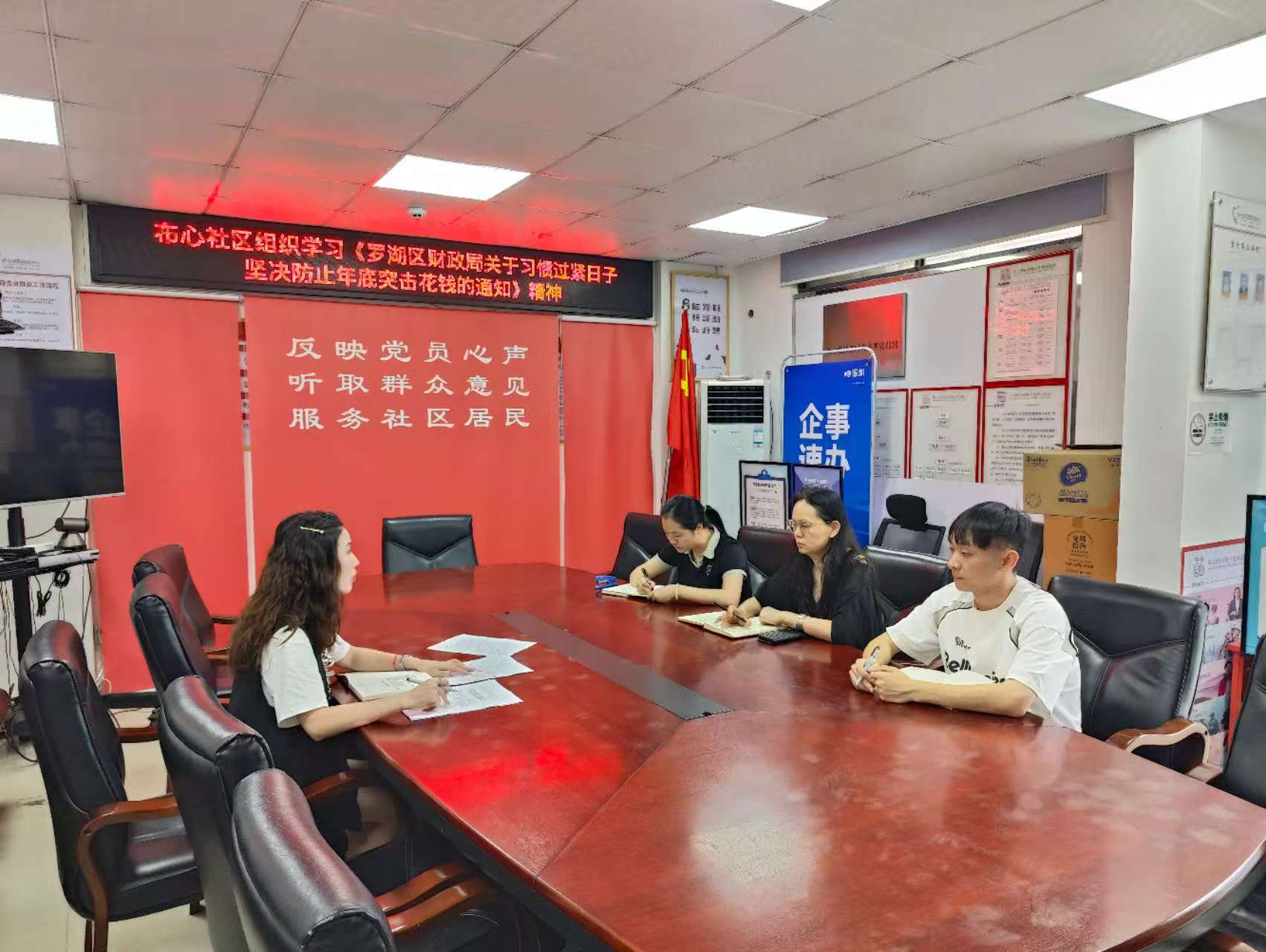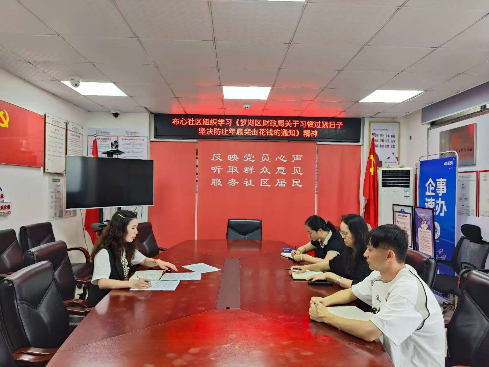 罗湖家园网讯:布心社区组织学习《罗湖区财政局关于习惯过紧日子坚决防止年度突击花钱的通知》精神