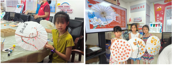 此次“非遗探索家”儿童成长小组活动,以非物质文化遗产为载体,构建起一个儿童能够深度感知文化魅力、亲自动手实践创造、乐于分享交流成果的活力空间。扎染的工序让孩子们体验了从构思、操作到收获惊喜的全过程,油纸伞的绘制则引导孩子们在方寸伞面间布局构思,激发了审美表达和专注力。更在小组协作中建立友谊,在成功体验中增强自信。接下来,布心社区将继续秉持儿童友好理念,带领孩子们深入体验更多非遗项目的独特魅力,将文化传承的种子深植童心,为社区儿童的全面成长注入深厚的文化自信底蕴,持续推动儿童友好型社区建设走深走实。